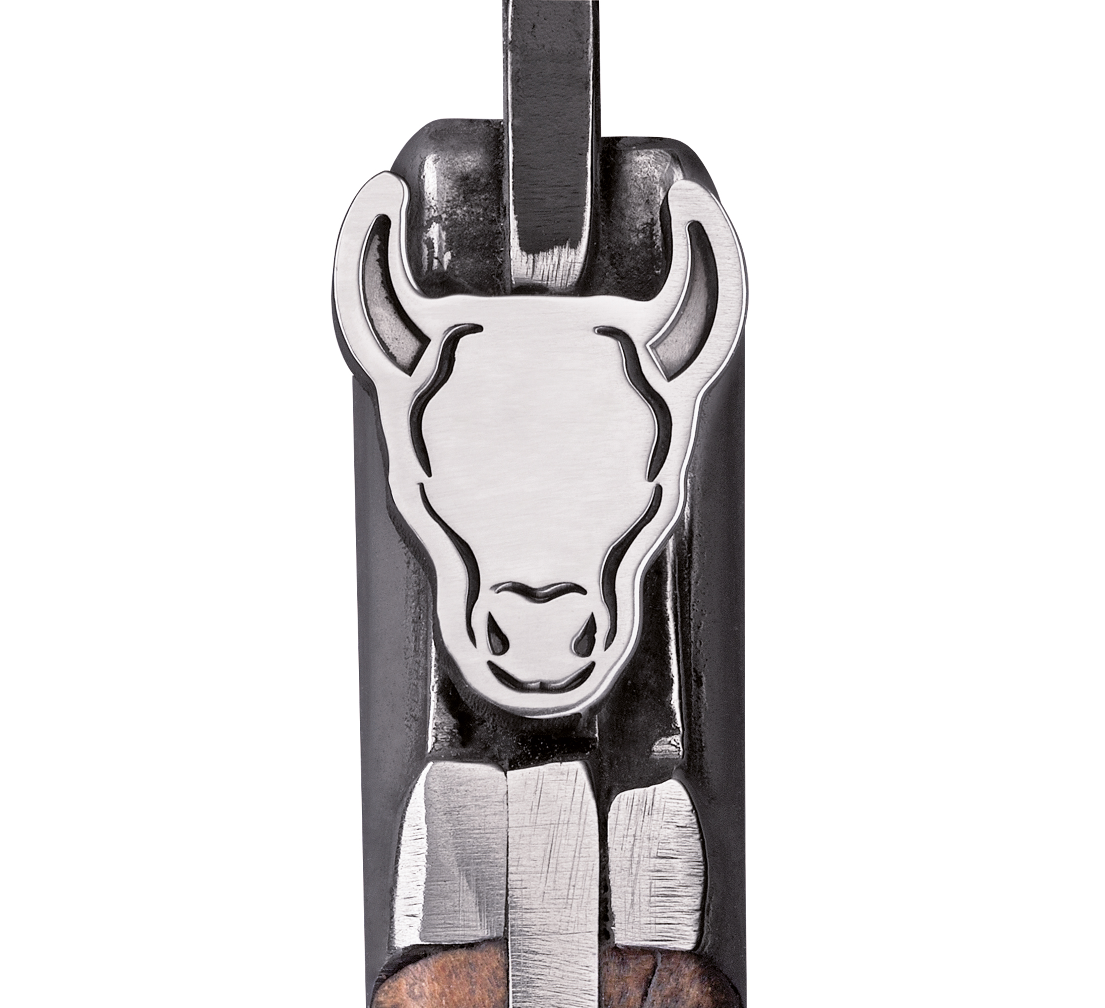 das Schneiden mit Antihaft-Wirkung. Das Bullen-Emblem am Griff lässt echte