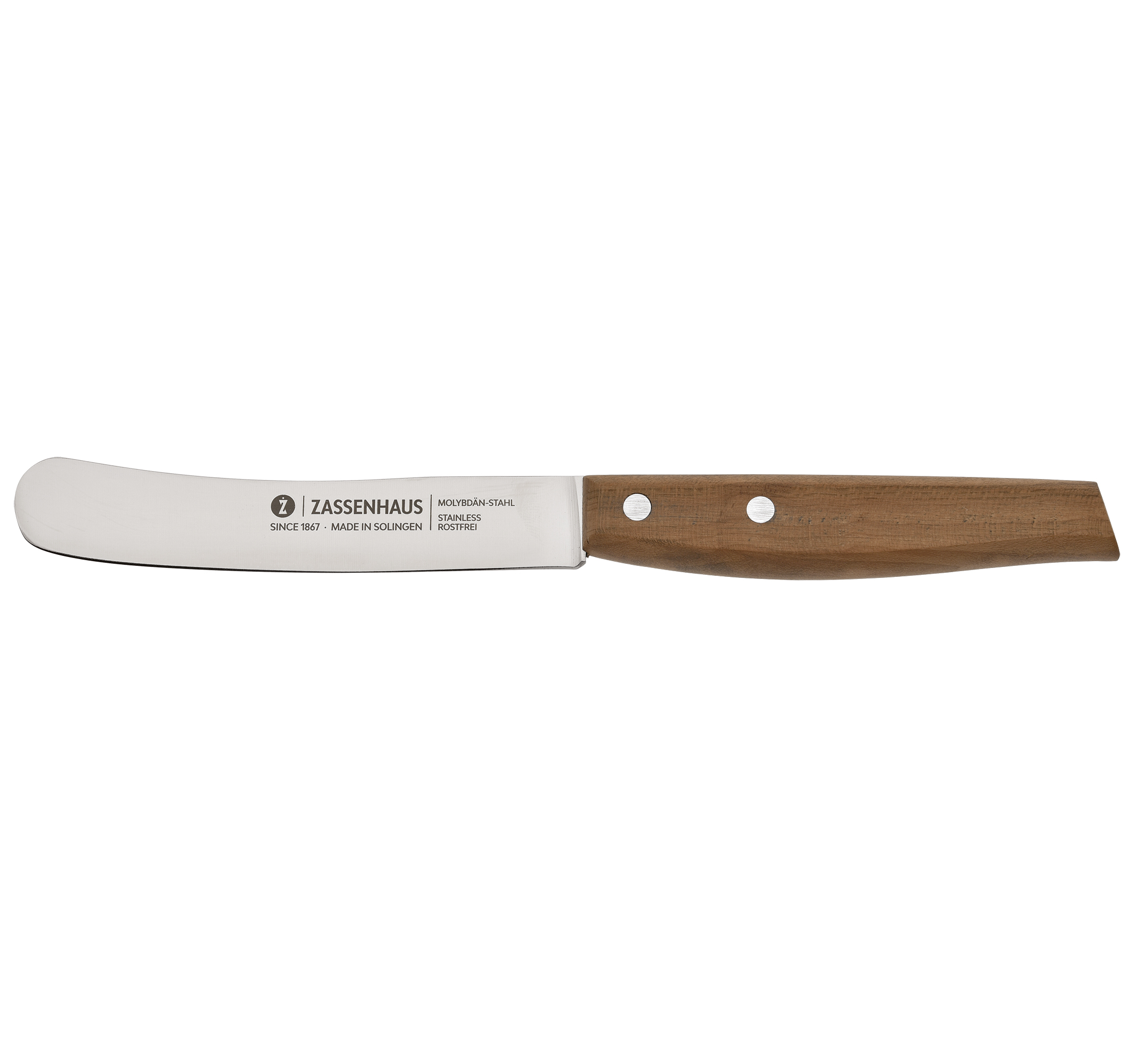 Das können nur die besten Schleifer in Solingen. Die Klingen des Tafelmessers von ZASSENHAUS sind gepließtet, also extrafein von Hand geschliffen. Der rostfreie Chrom-Molybdän-Vanadium-Stahl ist zudem speziell eisgehärtet und per Handabzug fein poliert. Dieser aufwendige Prozess macht das Tafelmesser dauerhaft korrosionsbeständig, auch Fruchtsäuren steckt der Allrounder locker weg. Die hochwertige Klinge bleibt lange scharf und schneidet Fleisch, Gemüse und Beilagen in saubere, appetitliche Stücke. Der ergonomische Griff aus hochwertigem Holz kann sich auf jeder Tafel sehen lassen.
