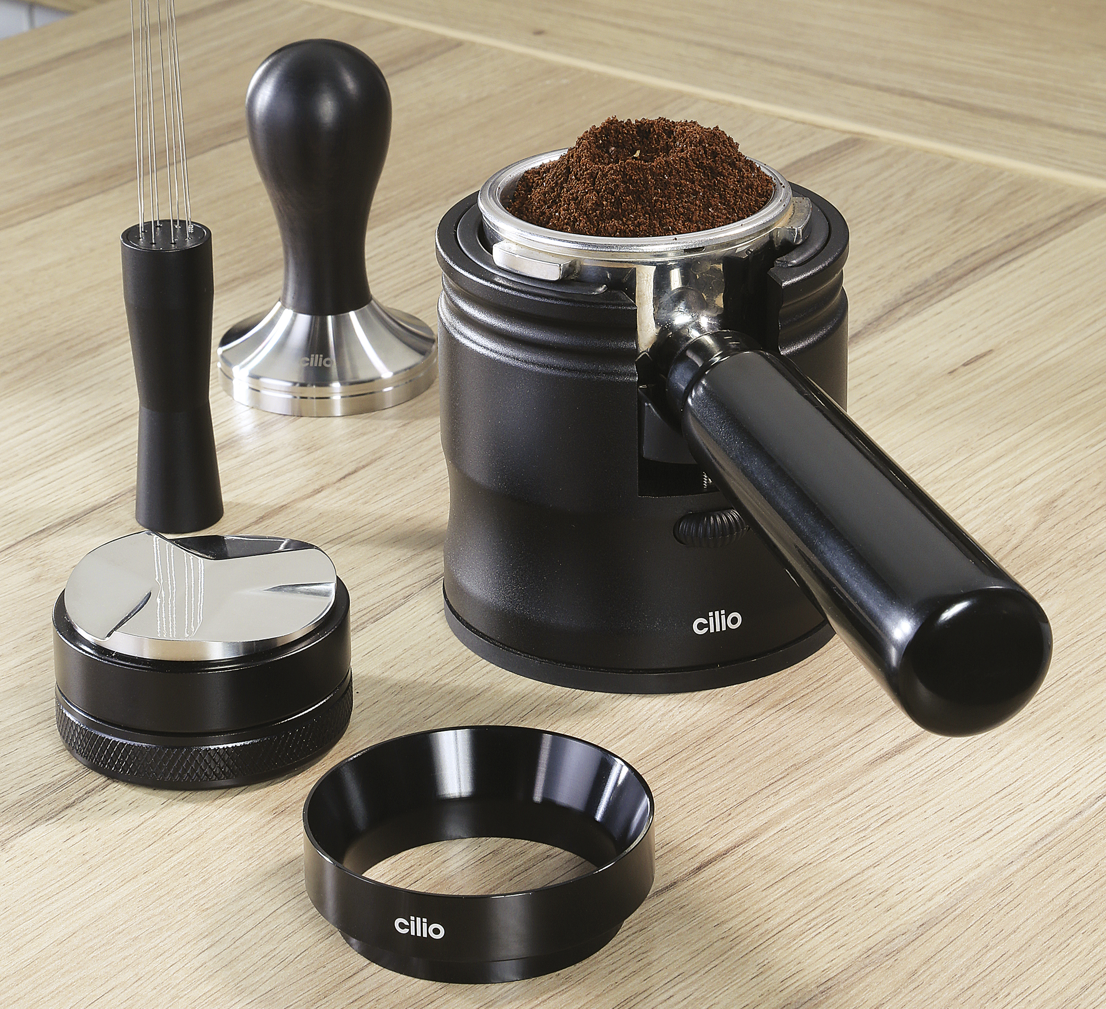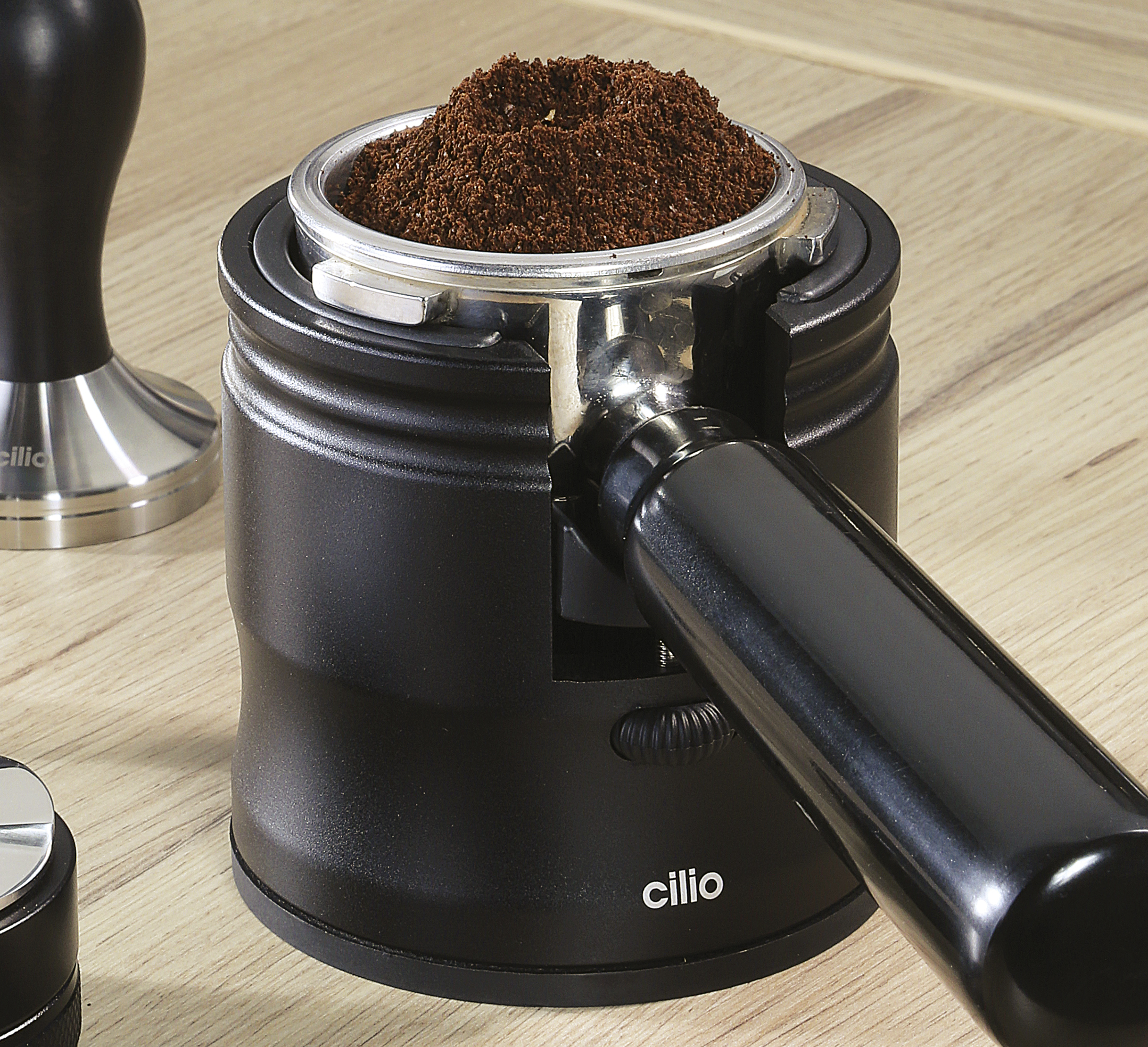 Solide Basis für Ihre Kaffeespezialität. Beim Anpressen des Kaffeemehls im Siebträger wird ordentlich Druck erzeugt. Die Tamperstation BARISTA von cilio hält dagegen. Sie fixiert den Siebträger und verhindert, dass er verrutscht, beschädigt wird oder Kratzer auf Ihrer Arbeitsfläche hinterlässt. Einfach den Siebträger in eine der beiden höhenverstellbaren Halterungen einsetzen und beim Verteilen, Leveln und Tampern auf Nummer sicher gehen. Hält Ihnen Hände und Kopf frei.