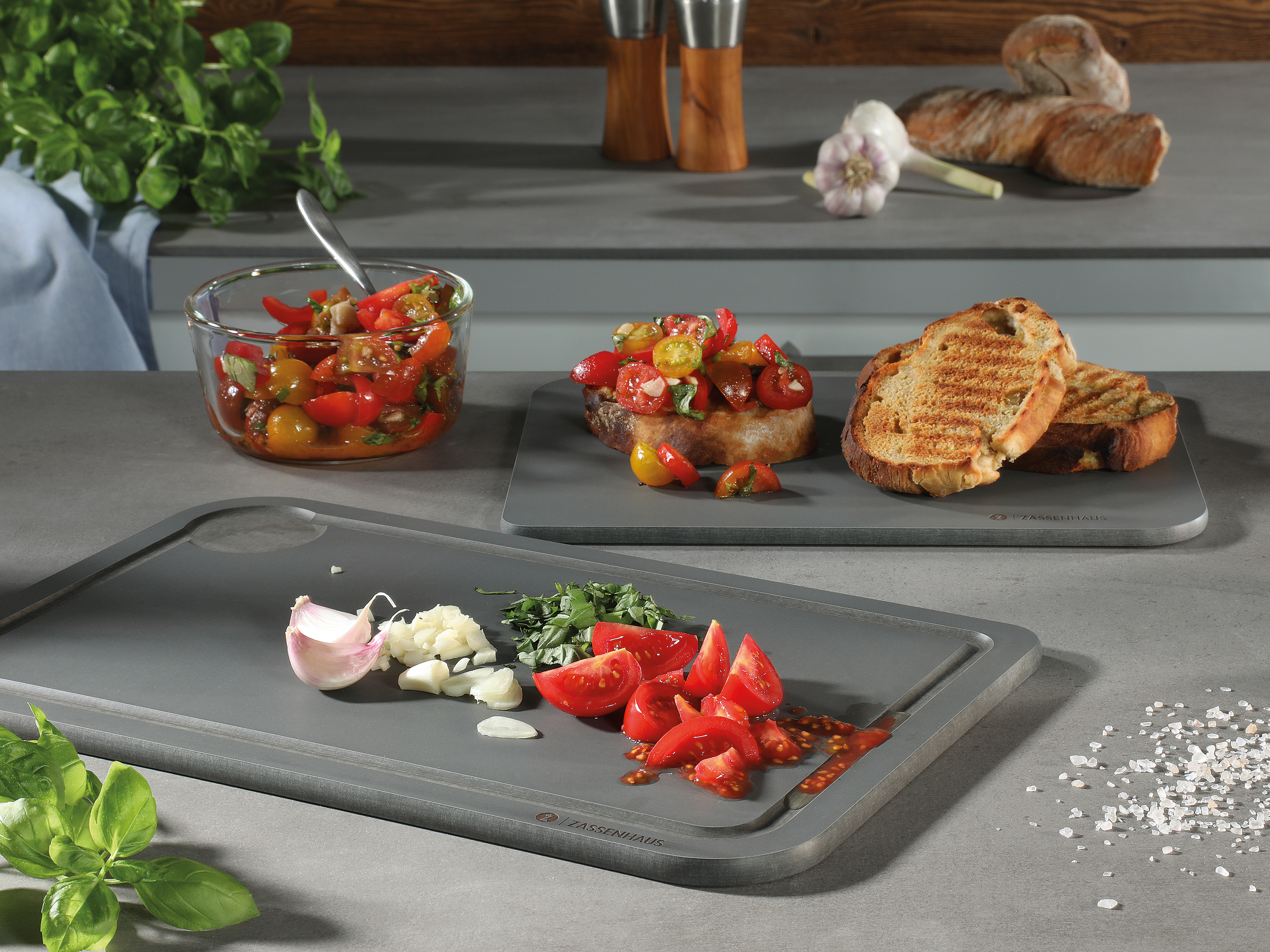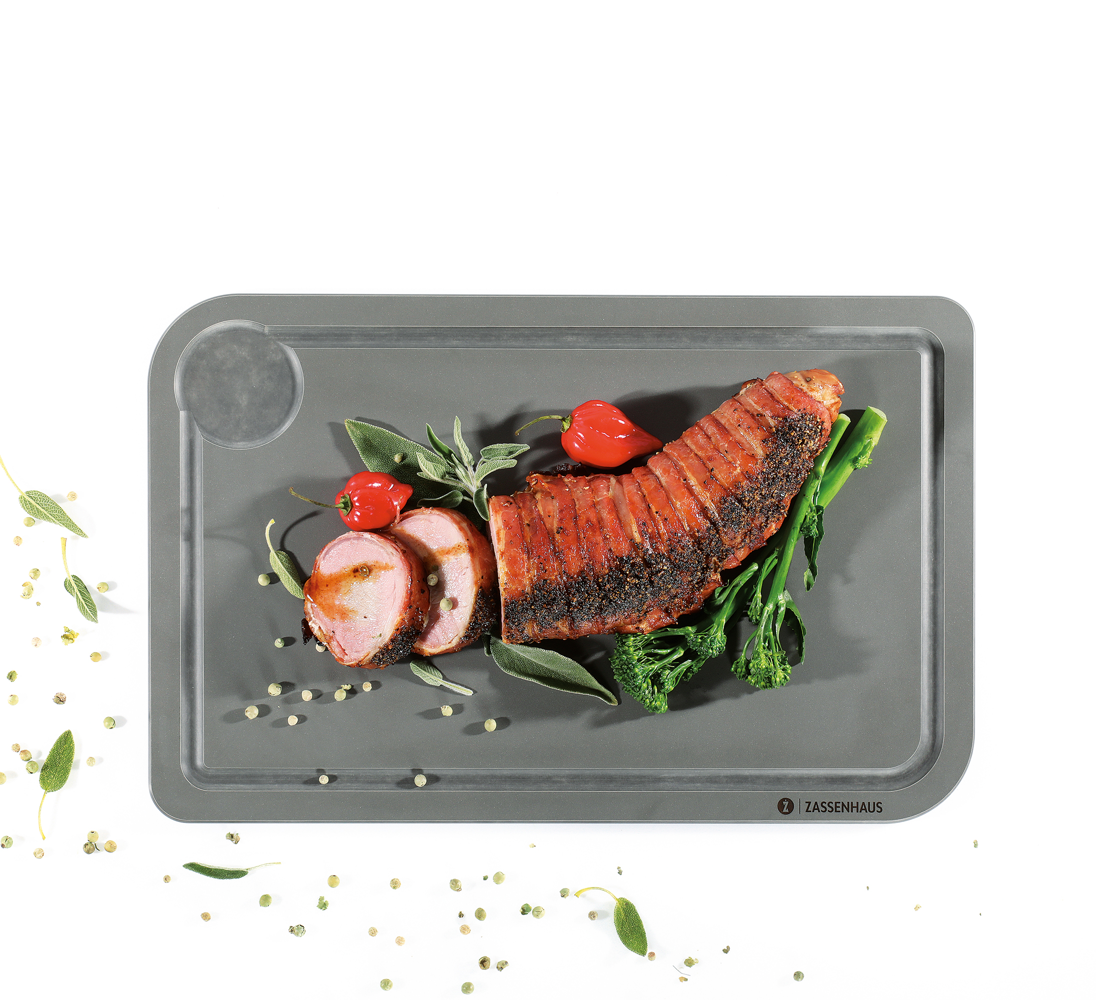 Das Material macht den Komfort-Unterschied. Die Küchenhelfer der Serie COMFORT XPLUS von ZASSENHAUS sind aus Papierverbundstoff gefertigt. Der moderne Werkstoff auf Basis von Holz-Zellulosefaser sammelt im Küchenalltag viele Pluspunkte. Er ist äußerst robust und temperaturbeständig bis 176 °C. Zudem sorgt er dafür, dass sich die praktischen Tools hygienisch in der Spülmaschine reinigen lassen. Ein klarer Vorteil beim Kochen. Das Tranchierbrett mit Saftrille schneidet bestens ab, wenn Sie den Sonntagsbraten zerlegen oder die Melone in mundgerechte Stücke teilen. Die rutschfesten Füßchen sorgen für die nötige Stabilität bei der Benutzung.