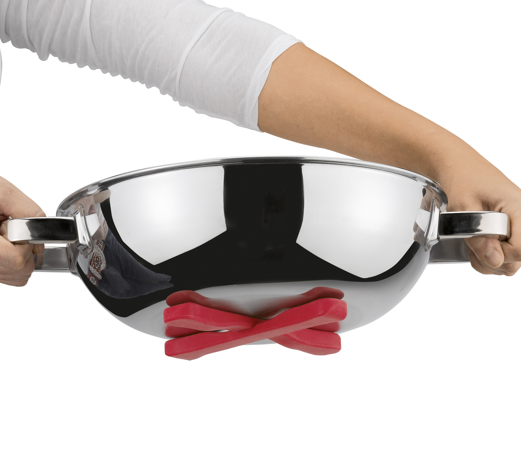 Auf Töpfe, Servierplatten und Formen übt er eine unwiderstehliche Anziehungskraft aus. Das liegt an seinen Magneten, mit denen der Topfuntersetzer FLEXI von Spring fest an Topf- und Pfannenböden haftet, die für Induktion geeignet sind. Und dann geht es sofort ab auf den Tisch. Zusätzlich punktet der Untersetzer mit Flexibilität, wie schon sein Name verrät. Wenn Sie die beiden Silikon-Stege diagonal zusammenstecken, ist die Abstellfläche ideal für runde Kochtöpfe. Kommen Servierplatten oder große Auflaufformen zum Einsatz, platzieren Sie die beiden Stege einzeln nebeneinander.