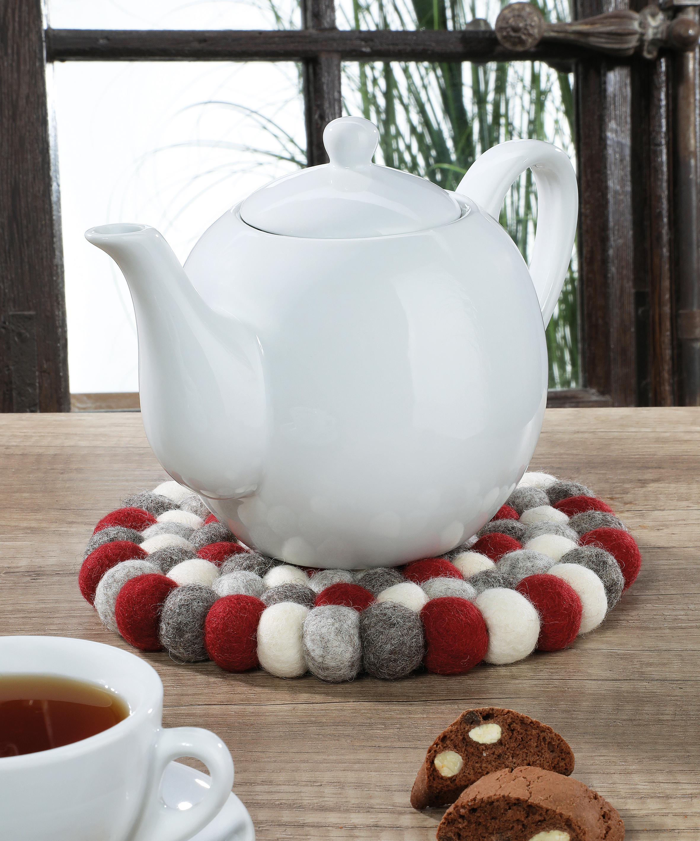 Ein buntes Stück Lebenshilfe. Der Untersetzer LANA schützt mit seinen farbigen Filzkugeln Tischplatten und Oberflächen vor Hitze und Kratzern. Und er leistet noch mehr. Mit LANA unterstützt cilio ein soziales Projekt in Nepal. Frauen in der Nähe von Kathmandu fertigen die Untersetzer in Handarbeit und nach alter Tradition. zudem wird die hitzebeständige, waschbare Schafwolle nur mit azofreien Farbstoffen behandelt. Entlang der gesamten Produktionskette werden die Kriterien des fairen Handels eingehalten. Das Projekt ist von der World Fair Trade Organisation (WFTO) zertifiziert. Übrigens: Der Untersetzer ist auch toll zum Fairschenken.