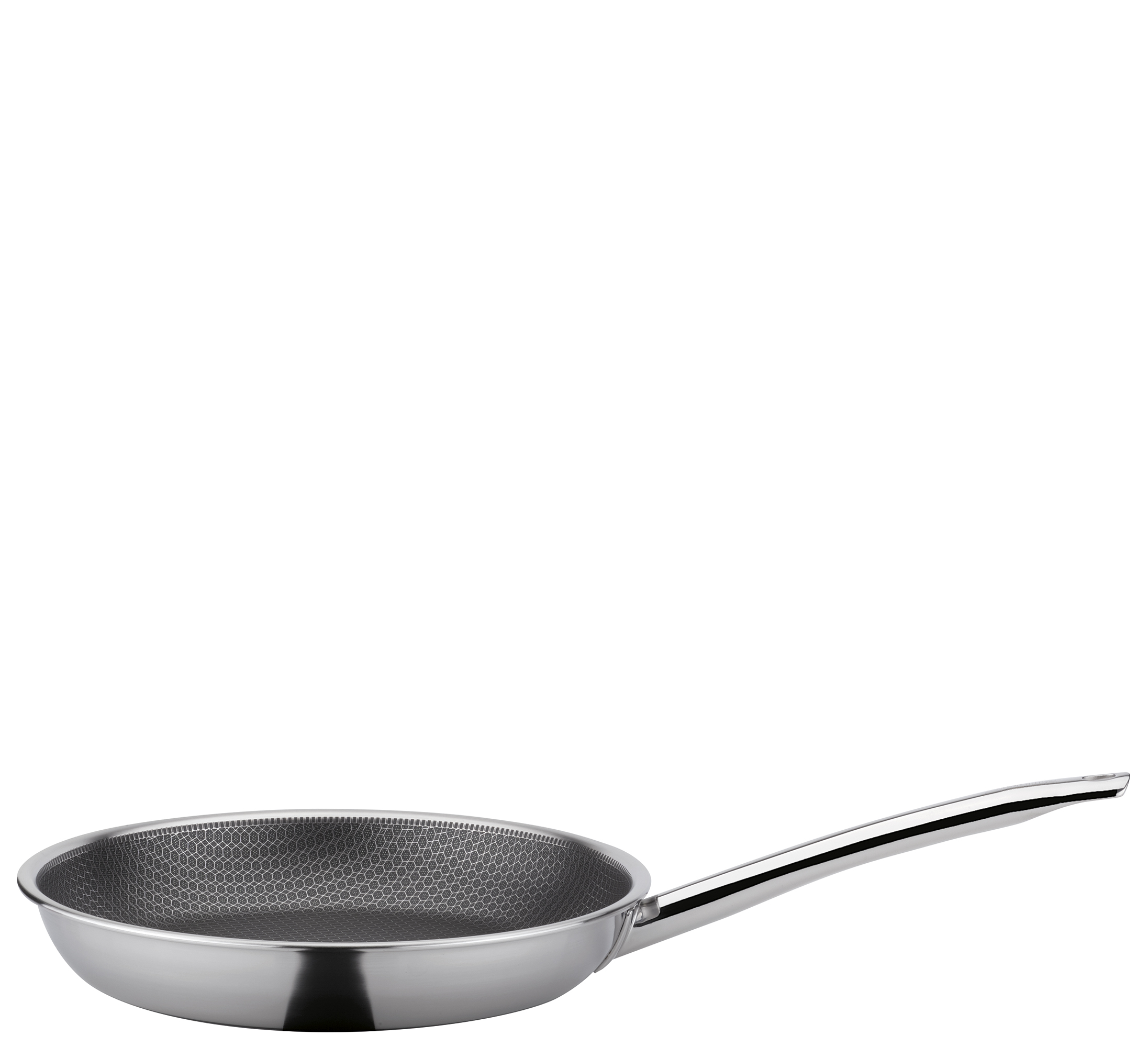 Material: 5-Lagen-Mehrschichtmaterial, aus einem Stück gefertigt. Vollflächige Antihaftbeschichtung auf mineralischer Basis ohne PFAS mit erhabenen Edelstahl-Stegen. Geschlossener Schüttrand. Backofen- und spülmaschinengeeignet. Geeignet für sämtliche Herdarten.