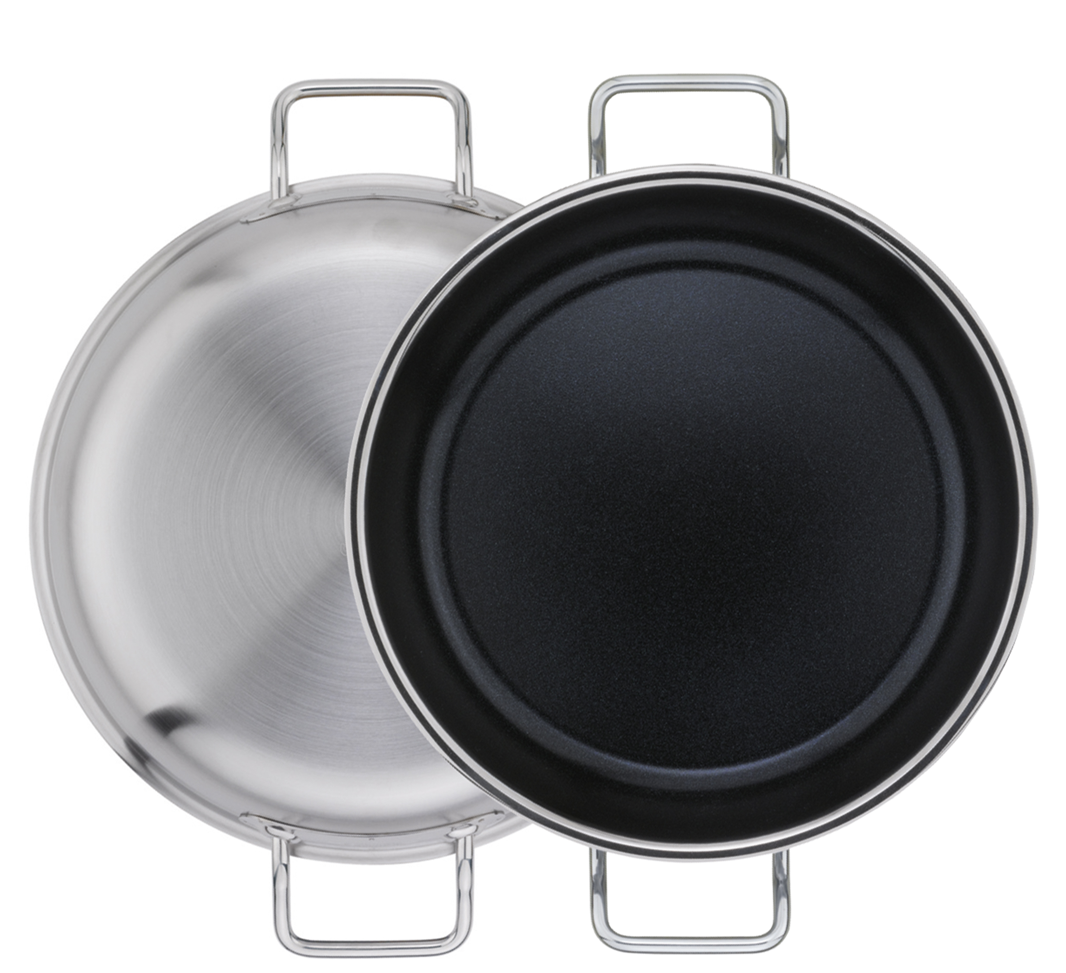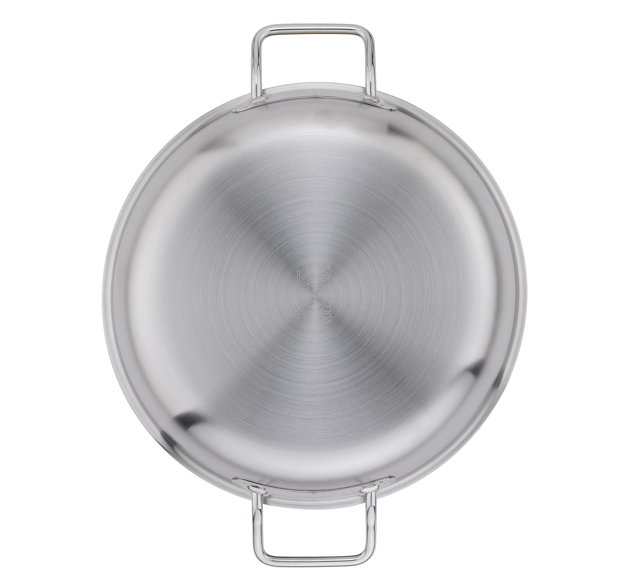 Material: 5-Lagen Mehrschichtmaterial, aus einem Stück gefertigt. 2-fach Antihaftbeschichtung auf mineralischer Basis. PFAS-frei. Geschlossener Schüttrand. Backofen- und spülmaschinengeeignet. Geeignet für sämtliche Herdarten.