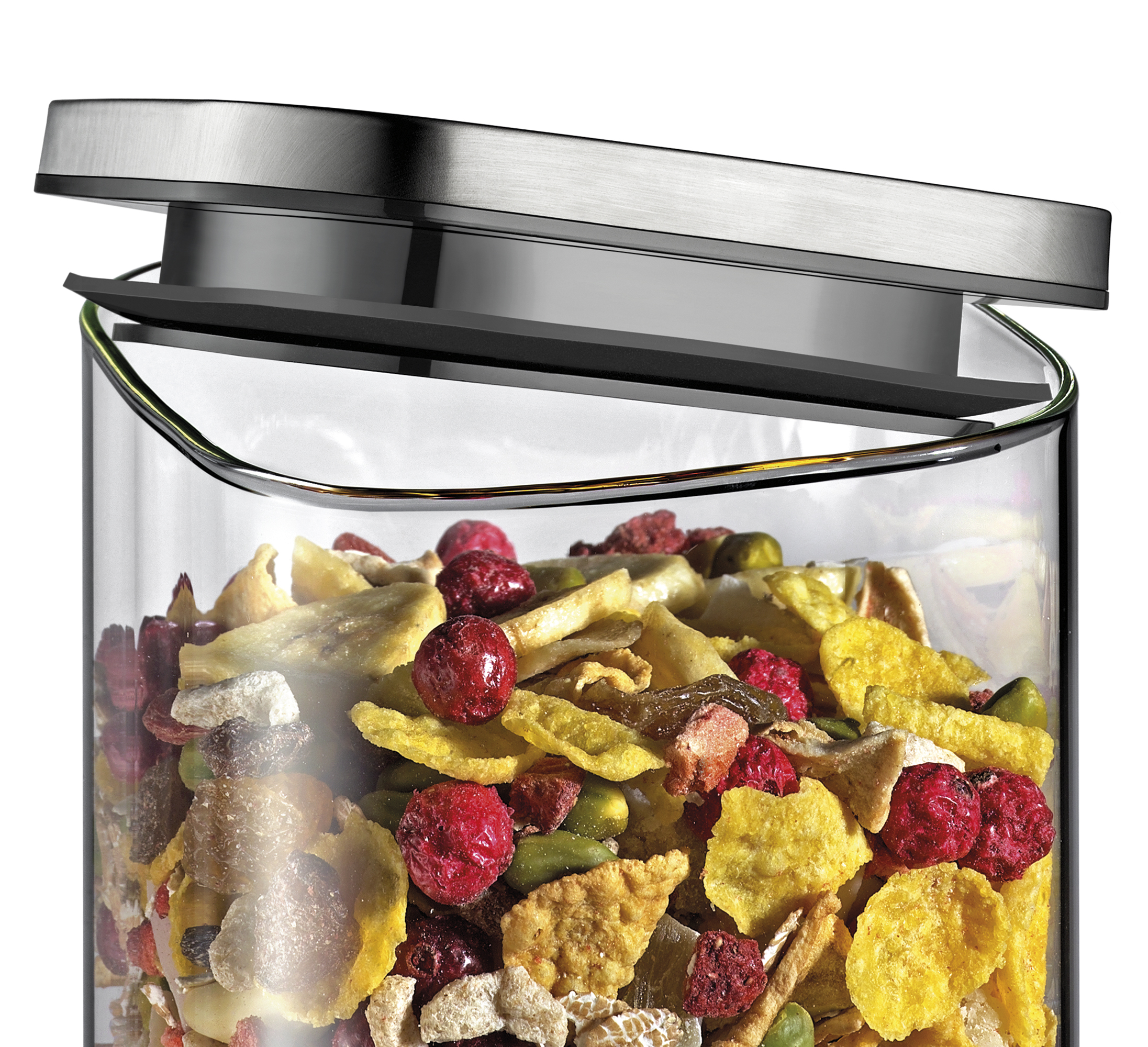 Mit diesem Würfel können Sie bei der cleveren Vorratshaltung rechnen. Trockene Lebensmittel wie Frühstücksflocken, Nüsse oder Nudeln sind in der Vorratsdose CUBO von cilio bestens auf-gehoben. Ihr dichtschließender Deckel hält die Leckereien lange frisch, bewahrt das Aroma und den Geschmack. Der Behälter aus robustem Borosilikatglas sieht gut aus und sorgt dafür, dass Sie den Inhalt stets im Blick haben. Hat da etwa jemand an den Schokolinsen genascht?