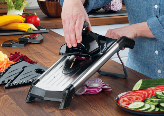Zerkleinern ist ein Arbeitsschritt, ohne den nahezu kein Rezept auskommt. Dies lässt sich nicht nur klassisch mit dem Messer erledigen – für das Schneiden, Hacken, Reiben, Hobeln, Pressen und Mixen hat KÜCHENPROFI eine Vielzahl an Werkzeugen parat.