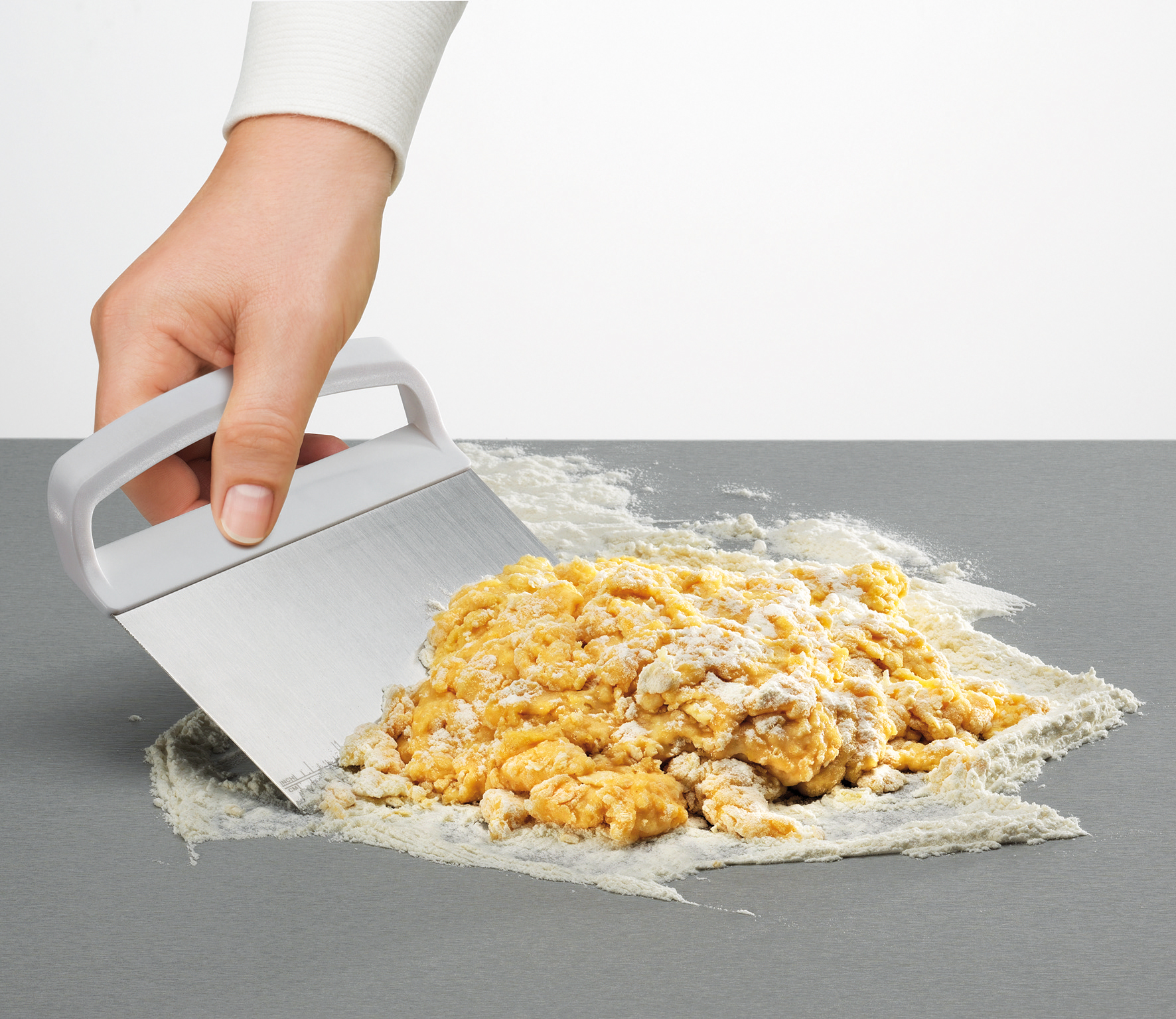 Bis der Kuchen, die Torte oder feines Gebäck aus dem Ofen kommen, sind viele Handgriffe nötig. Das 3-teilige KÜCHENPROFI Teigschaber-Set erleichtert Ihnen die Arbeit. Der Teig-schneider mit Skala kommt zum Einsatz, wenn Sie die Teigmenge für Partybrötchen oder Laugenbrezeln portionieren möchten. Der Küchen-spachtel ist ideal zum restlosen Auskratzen der Schüssel und Verteilen des Teigs in der Form. Und für den letzten Schliff Ihrer Torte greifen Sie zu der Teigkarte. Sie ist der passende Helfer, um die Buttercreme gleichmäßig aufzutragen. Je nach Einsatzgebiet sind die Küchenaccessoires aus Edelstahl, Silikon und Kunststoff gefertigt, mit glatten oder flexiblen Kanten versehen. Alle drei Teile haben handliche Griffe und lassen sich hygienisch in der Spülmaschine reinigen. Zusammengesteckt nimmt das Trio im Schrank wenig Platz weg.