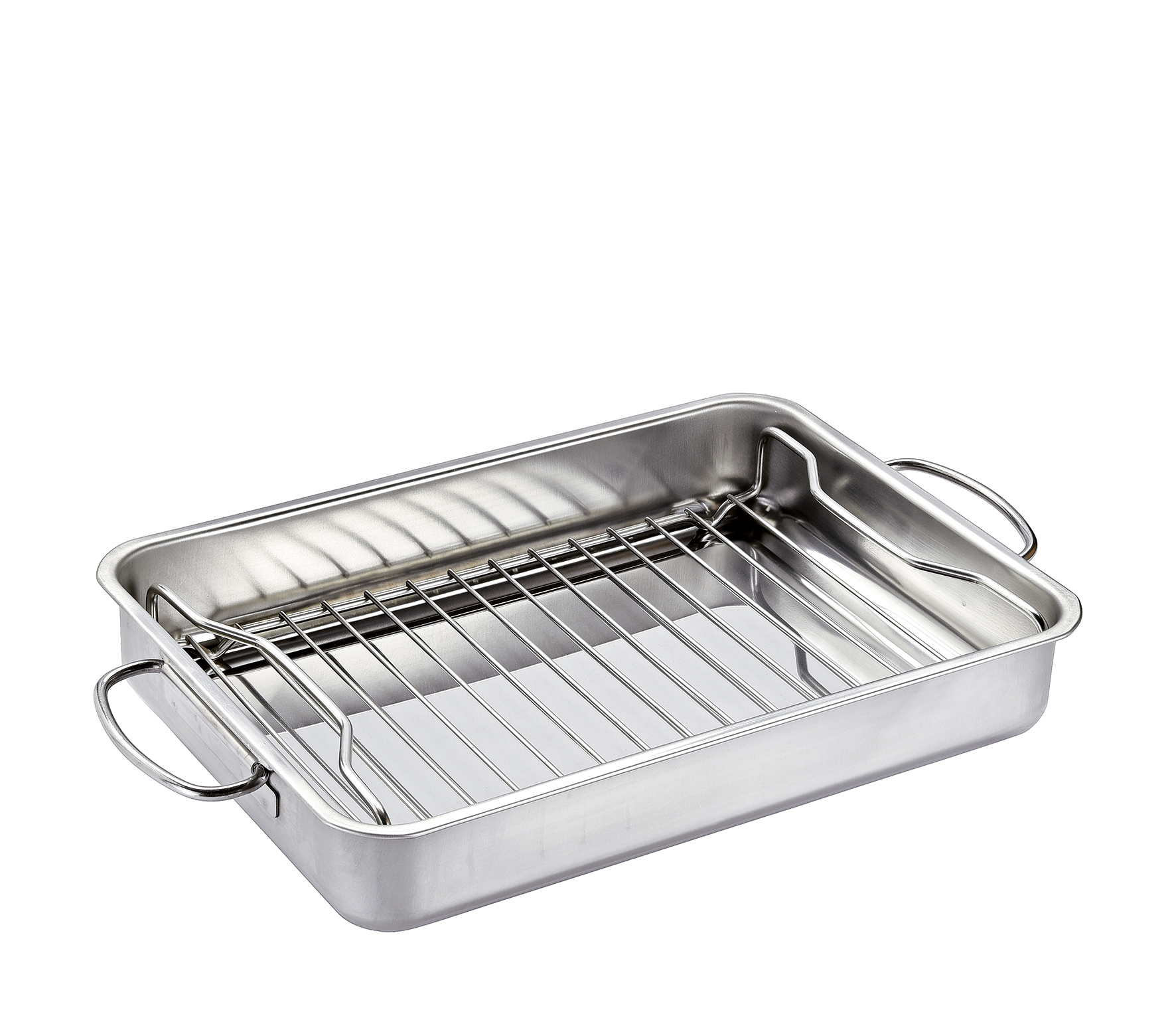Heiß begehrt wegen seiner Flexibilität. Der Grill- und Ofenbräter STYLE BBQ von KÜCHENPROFI ist auf dem Grill und beim Marinieren eine gute Alternative zu herkömmlichen Einweg-Schalen aus Aluminium. Zusätzlich können Sie darin auch Köstlichkeiten aus dem Backofen oder Dampfgarer zubereiten. Von Braten und Schmoren über Dämpfen bis Gratinieren ist alles möglich. Der Bräter aus robustem Edelstahl hat die optimale Höhe für Aufläufe und Gratins. Das Gitter können Sie zur fettarmen Zubereitung von Fisch, Fleisch oder Gemüse nutzen. Es ist flexibel einsetzbar, je nach Abtropfhöhe Ihres Garguts. An den klappbaren Griffen transportieren Sie den Allrounder wahlweise zum Tisch oder platzsparend in den Schrank.