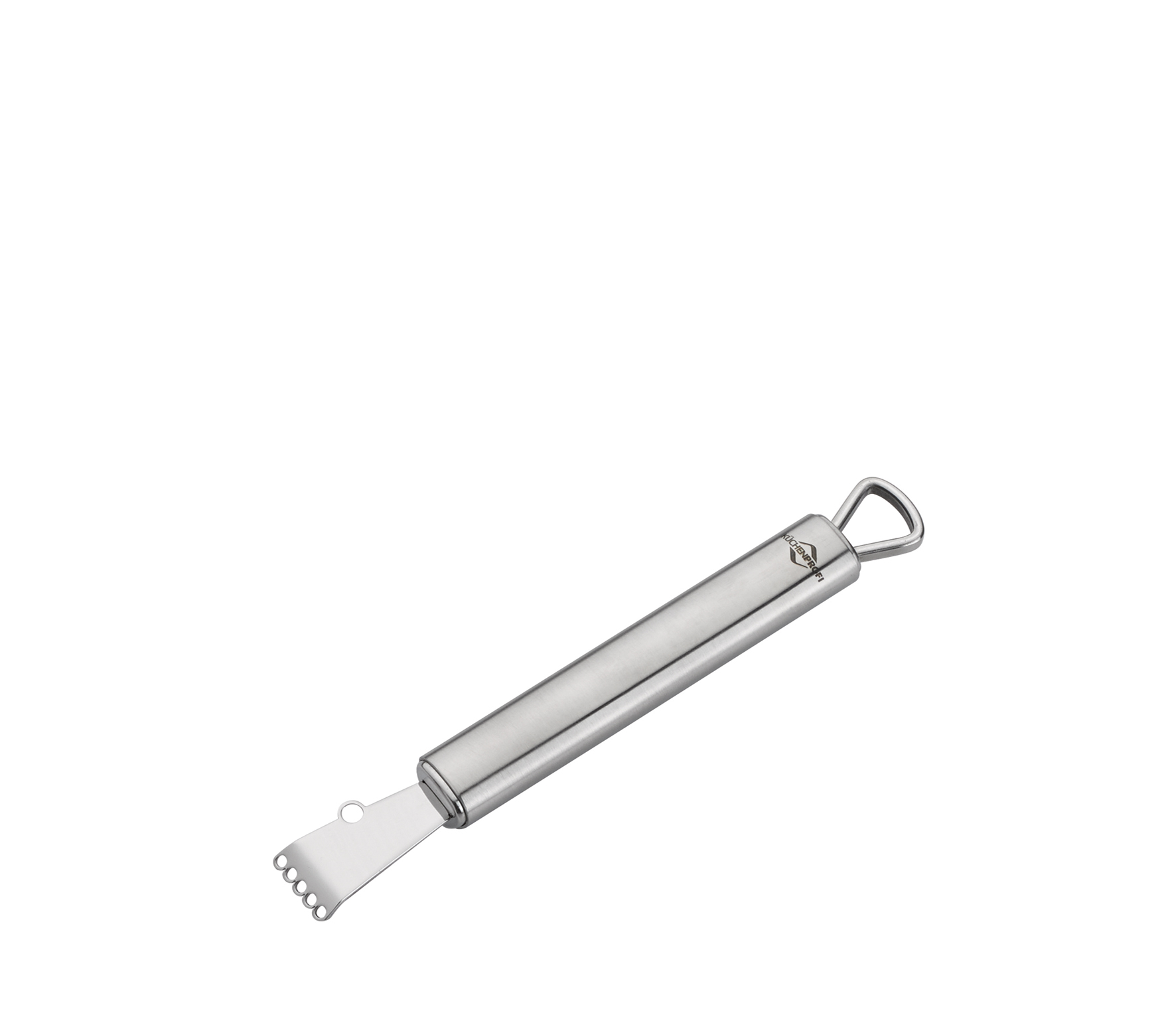 Trifft den Geschmack anspruchsvoller Köche. Die Serie PARMA von KÜCHENPROFI verbindet Funktion und Design perfekt. Die Basics für den täglichen Einsatz an Herd und Backofen sind aus robustem Edelstahl gefertigt und geeignet für die Spülmaschine. Ihre Griffe liegen gut in der Hand, das schlanke Design macht sie zum Hingucker an der Küchenleiste. Dort haben Sie von der Vorspeise bis zum Dessert für jede Gelegenheit den passenden Helfer am Start. Feine Streifen, großer Effekt. Mit dem Zitronenzester bringen Sie den Risotto, Fischgerichte und erfrischende Drinks optisch sowie geschmacklich nach vorne. Er ist auch für Limetten und Orangen geeignet.