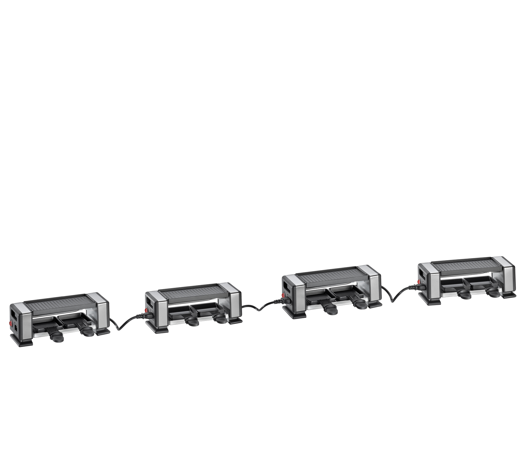 Sein Plus ist seine Flexibilität. Das Raclette VISTA2 PLUS von KÜCHENPROFI ist erweiterbar mit bis zu drei Geräten. So können Sie den Abend in trauter Zweisamkeit verbringen oder die Runde auf bis zu acht Genießer ausdehnen. Das Raclette umfasst zwei Pfännchen, die auf der unteren Etage Platz finden, und zwei Schaber. Auf der Grillplatte geht die Schlemmerei weiter. Dort treffen sich Hähnchenbrust, Filetstreifen, Fisch und Mini-Bratwürstchen für die Kleinen. Die bunte Mischung spiegelt den Charme des Raclette-Essens wider: Jeder, was er mag, und alles ganz gemütlich. Erfreulich unkompliziert ist auch die Reinigung des Gerätes. Die Pfännchen und die Grillplatte sind antihaftbeschichtet, da bleibt kaum etwas kleben.