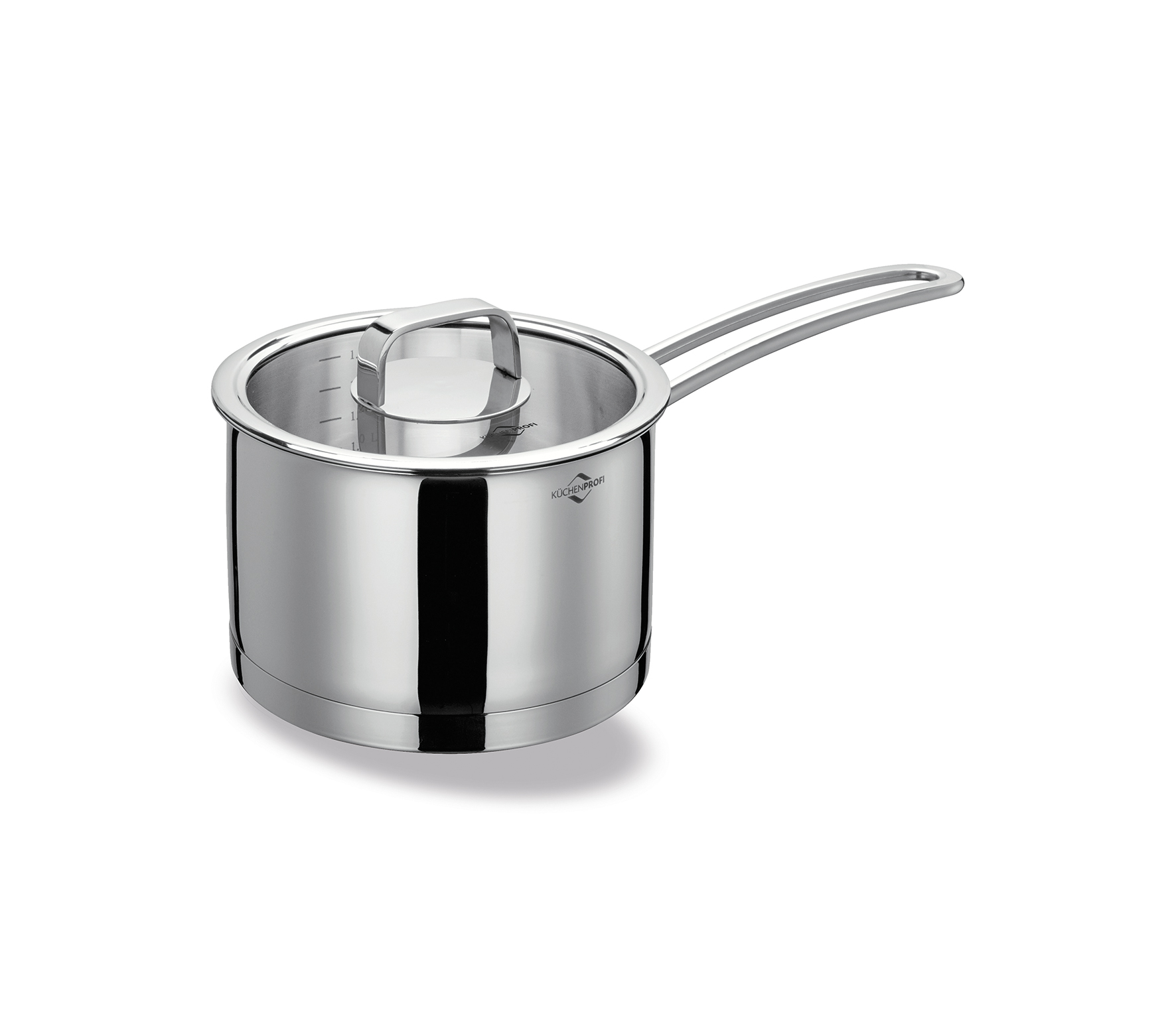 Alles im Griff. Die Stielkasserolle SAN REMO von KÜCHENPROFI halten Sie ganz bequem in einer Hand, während die andere frei ist zum Anrühren von Saucen. Dank des hohen Rands schwappt nichts über. Schleckermäulchen kochen ihren Pudding in der Stielkasserolle. Die praktische Innenskala zeigt an, wie viel Flüssigkeit Sie benötigen, der extra starke Mehrschichtboden verteilt die Hitze schnell und gleichmäßig. Hat die Milch den Siedepunkt erreicht, bugsieren Sie den Topf mit Hilfe des wärmeisolierenden Griffs schnell vom Herd.
