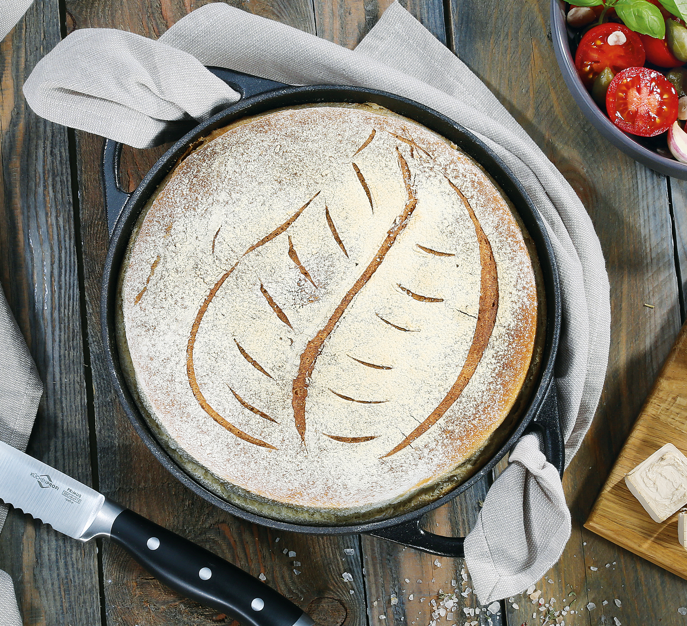 Von der Sonne verwöhntes Gemüse, Lammfleisch aus dem Hochland, Fisch und Meeresfrüchte – das alles bietet die Provence. Vielseitig, leicht und gesund ist die Küche dieser südfranzösischen Region. In dieser Tradition steht die KÜCHENPROFI Guss-Kollektion PROVENCE. Die Serie ist ideal zum Schmoren, Köcheln, Kochen, Braten und Frittieren. Das Gusseisen nimmt die Hitze schnell auf und verteilt sie optimal. So können Sie nach kurzer Zeit die Energiezufuhr reduzieren – das spart Strom und erhält das Aroma Ihrer Lebensmittel. Die PROVENCE-Kochgeschirre sind für alle Herdarten inklusive Induktion geeignet, die Knöpfe bis 250 °C backofenfest. Beim stilvollen Servieren ist das Kochgeschirr der Frische-Kick auf Ihrer Tafel. Das ebenso zeitlose wie durchdachte Design mit den handlichen Knöpfen und ergonomischen Griffen ist ein echter Blickfang. Und jetzt ist Ihre Fantasie gefragt. Wie wäre es mit einem Miesmuscheleintopf mit Seelachs, Lauch, Kartoffeln und einem Schuss Wermut? Bon appétit!
