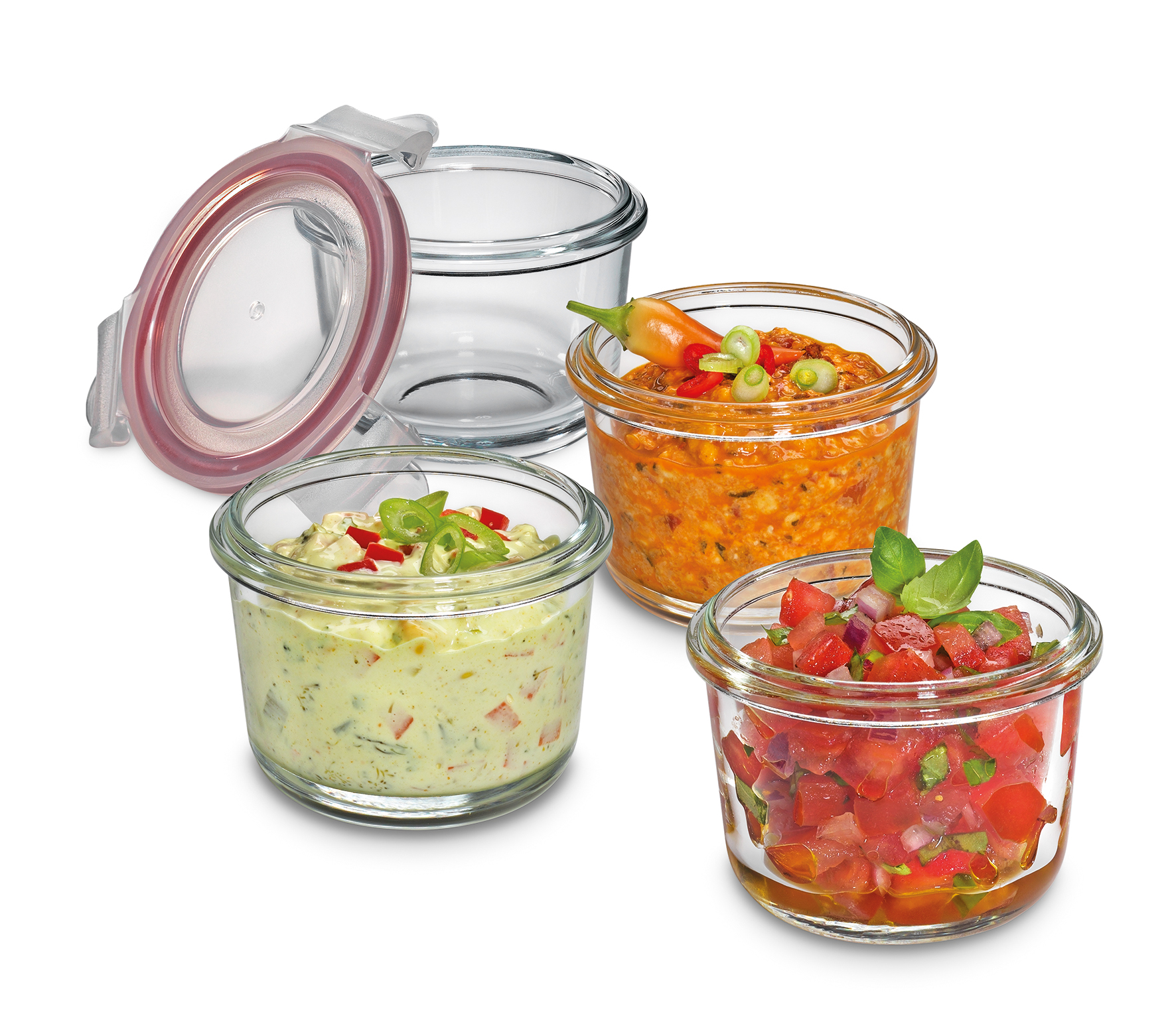 Kommt beim cleveren Haushalten groß raus. Die Vorratsdose MINI von KÜCHENPROFI hält kleine Mengen frisch. Dips und Tapas vom Grillabend, Gemüsereste, die am nächsten Tag im Auflauf landen und den halben Apfel vom Morgenmüsli. Für den schnellen Überblick im Kühlschrank ist die Vorratsdose aus Glas gefertigt. Der Deckel mit Silikondichtung sitzt auslaufsicher. Er kommt nur runter, wenn Sie die Dose im Backofen oder der Mikrowelle erhitzen. Zum Einfrieren ist der Mini-Vorratsbehälter ebenfalls geeignet.