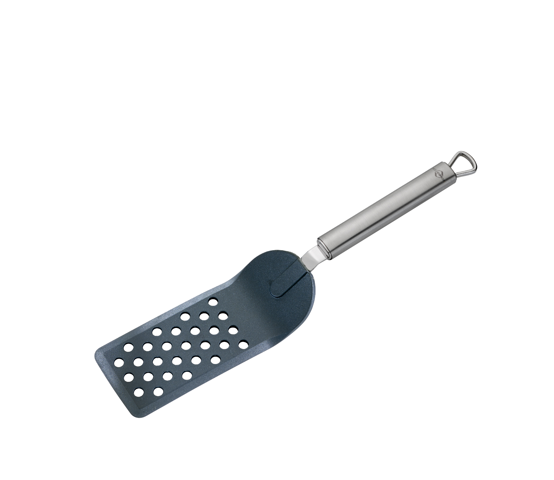 Trifft den Geschmack anspruchsvoller Köche. Die Serie PARMA von KÜCHENPROFI verbindet Funktion und Design perfekt. Die Basics für den täglichen Einsatz an Herd und Backofen sind aus robustem Edelstahl gefertigt und geeignet für die Spülmaschine. Ihre Griffe liegen gut in der Hand, das schlanke Design macht sie zum Hingucker an der Küchenleiste. Dort haben Sie von der Vorspeise bis zum Dessert für jede Gelegenheit den passenden Helfer am Start. Doppelt clever ist die Nylon Palette. Der hochwertige Kunststoff ist sanft zu beschichtetem Kochgeschirr, das heiße Fett fließt dank der Lochung ab. So können Verbrennungen durch Fettspritzer vorgebeugt werden.