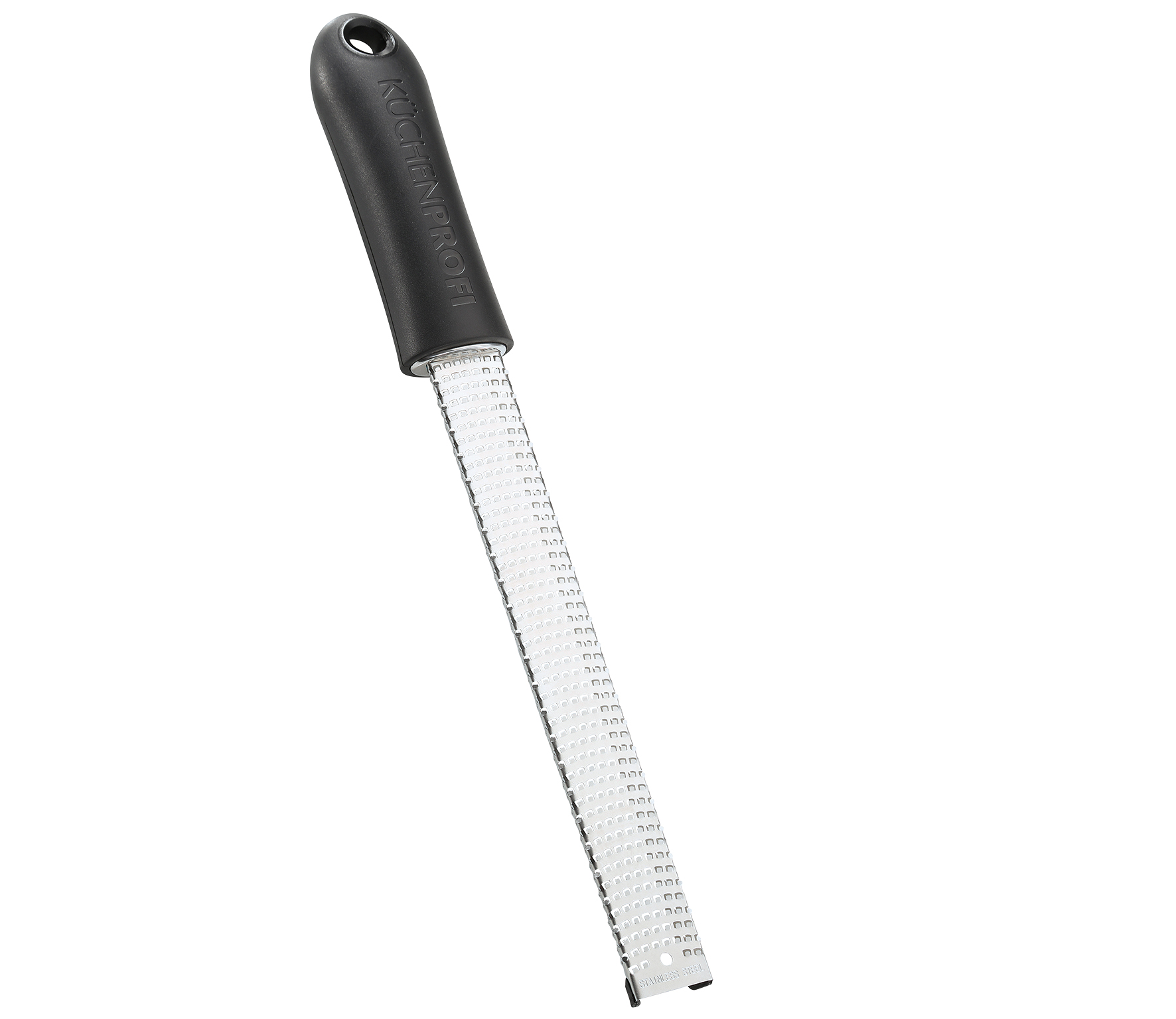 Schnittige Performance. Die rasiermesserscharfen MASTER GRIP Reiben von KÜCHENPROFI liefern perfekte Ergebnisse ohne Kraftaufwand. Möglich ist dies durch eine aufwendige Foto-Ätztechnik, die den Reiben ihre extreme Schärfe verleiht. Robuster Edelstahl trifft auf einen ergonomischen Soft-Touch-Griff; für ein sicheres Handling und maximale Kontrolle sorgen auch die rutschfesten Füße und der Klingenschutz. Die feine Zester-Reibe liefert den Abrieb von Zitrusfrüchten und Schokoladensplitter.