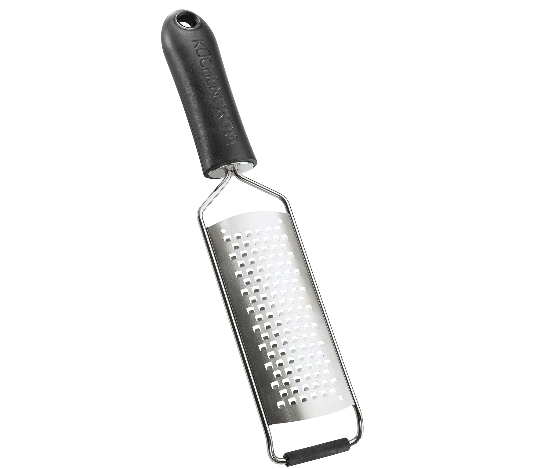Schnittige Performance. Die rasiermesserscharfen MASTER GRIP Reiben von KÜCHENPROFI liefern perfekte Ergebnisse ohne Kraftaufwand. Möglich ist dies durch eine aufwendige Foto-Ätztechnik, die den Reiben ihre extreme Schärfe verleiht. Robuster Edelstahl trifft auf einen ergonomischen Soft-Touch-Griff; für ein sicheres Handling und maximale Kontrolle sorgen auch die rutschfesten Füße und der Klingenschutz. Um Möhren und Äpfel für Rohkostsalate kümmert sich die grobe Reibe.
