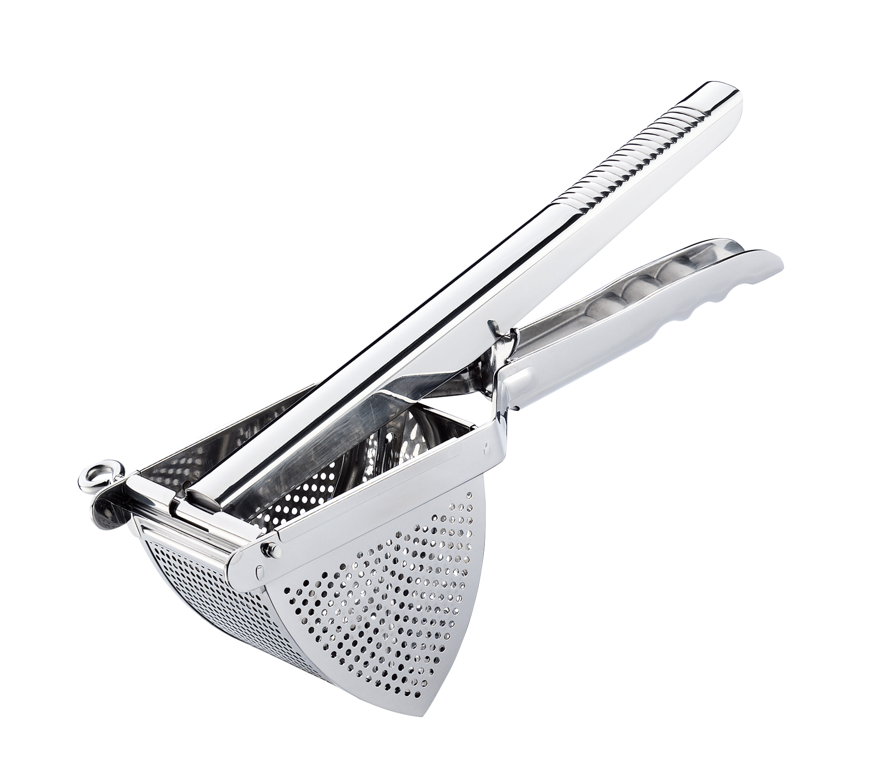 Ihr Trick ist die zusätzliche, seitliche Lochung. Damit erleichtert Ihnen die KÜCHENPROFI Kartoffelpresse COMFORT die Arbeit. Kartoffeln für Püree pressen Sie schnell und bequem, jetzt gibt es wirklich keinen Grund mehr, zu einem Fertigprodukt zu greifen. Die Öffnung der Presse ist ausreichend groß und lässt sich gut befüllen, gerne auch mit gekochtem Gemüse oder saisonalen Früchten. An dem langen Griff packen Sie das stabile Gerät aus rostfreiem Edelstahl sicher. Als Spezialist für funktionale Haushaltshelfer hat KÜCHENPROFI auch an die leichte Reinigung der Kartoffelpresse gedacht. Wenn Sie den Sicherungsstift entfernen, können Sie die Presse auseinander nehmen und in die Spülmaschine legen. Übrigens: Eine gute Wahl für Püree sind mehlig kochende Kartoffeln, die nach dem Kochen fast von alleine auseinander fallen.