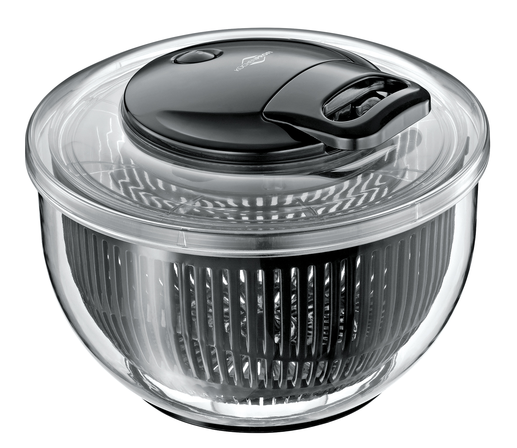 Die gesunde Fast-Food Variante. In der KÜ-CHENPROFI Salatschleuder TURBO trocknen Sie Kopfsalat, Lollo Rosso oder Romana im Handumdrehen. Vielmehr im Seilumdrehen. Der Seilzug mit Rückzugautomatik bringt Ihren Salat in Schwung, das Wasser wird im Nu herausgeschleudert. Die Schüssel steht auf rutschfestem Boden, sie ist, wie der Korb, aus hochwertigem Kunststoff gefertigt. Der Mix aus transparenten und schwarzen Elementen wirkt modern. So macht die Salatschleuder auch optisch eine gute Figur.
