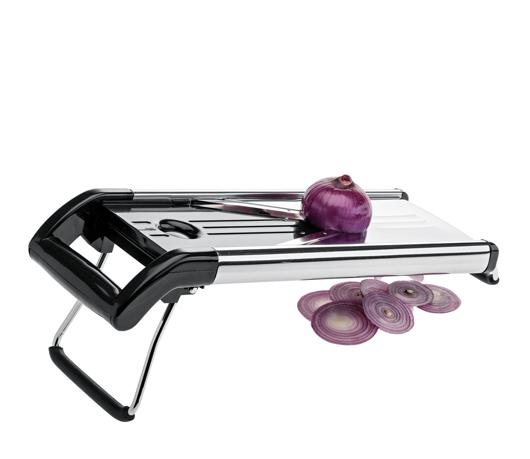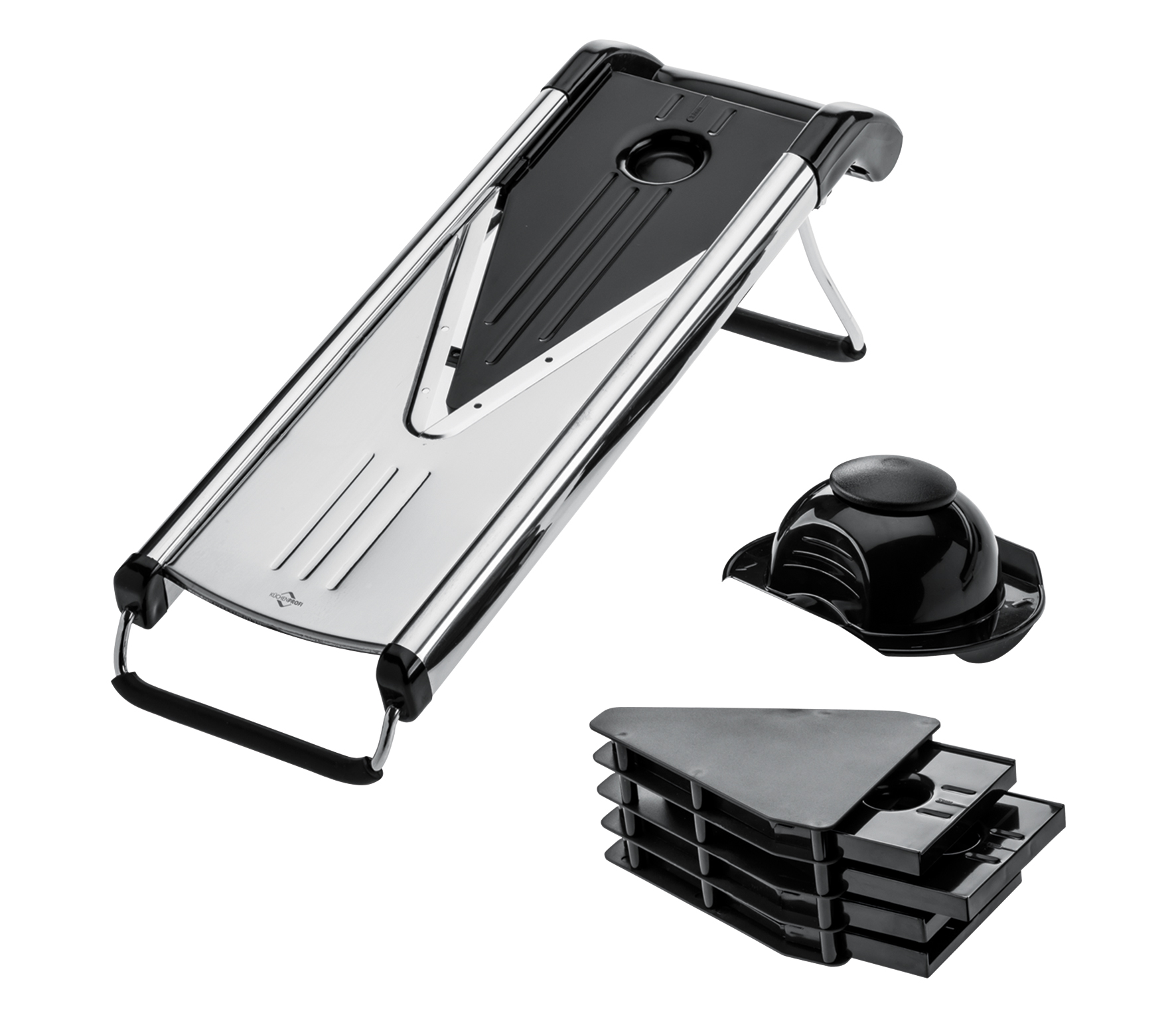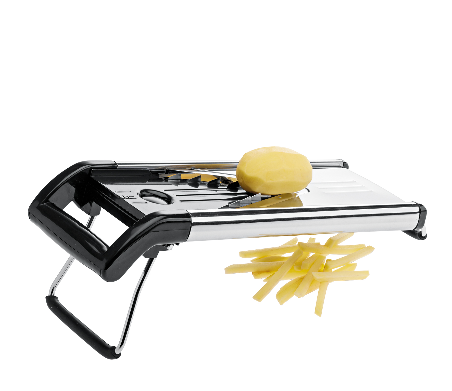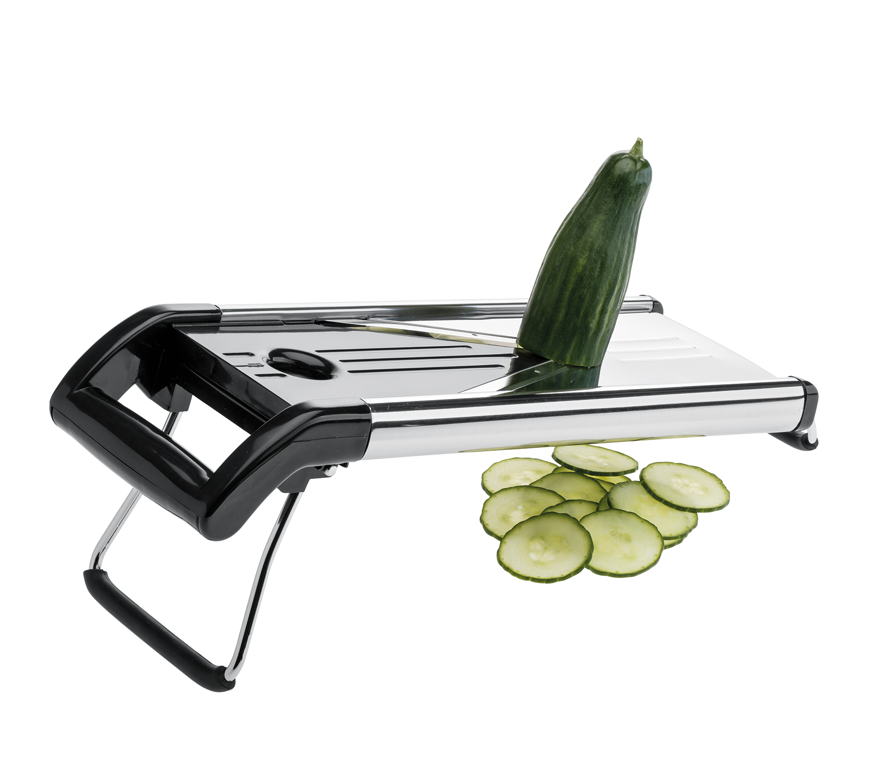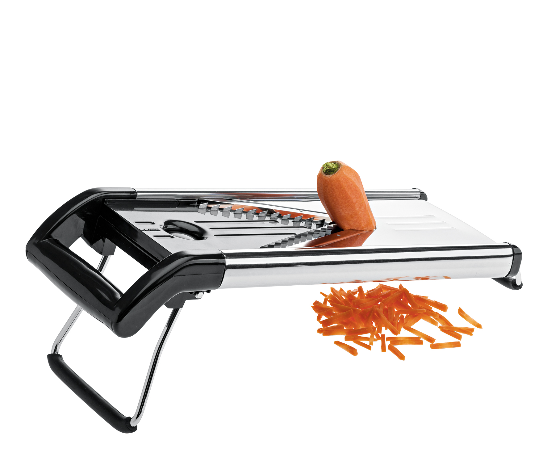 Es ist bunt, vielseitig und steckt voller Vitamine. Gemüse liegt im Trend, ist längst nicht nur Beilage, sondern spielt immer häufiger die Hauptrolle auf dem Teller. Der Gemüsehobel PROFESSIONAL von KÜCHENPROFI ist so vielseitig wie die Einsatzmöglichkeiten der gesunden Kost. Fünf Schneideinsätze liefern Scheiben und Streifen von fein bis grob. Gurkenscheiben für den Salat sind im Nu parat, Möhren und Zucchini verwandeln sich blitzschnell in feine Julienne und bei dem Carpaccio aus hauchdünnen Pilz-Scheiben in einer leichten Vinaigrette und Parmesan greifen auch Fleischesser gerne zu. Der Gemüsehobel steht sicher auf rutschfesten Füßen. Die scharfen Klingen aus rostfreiem Edelstahl schneiden sauber, die Schneideinsätze aus Kunststoff lassen sich gut unter fließendem Wasser reinigen. Der praktische Restehalter packt auch kleine Gemüse- oder Obststücke und schützt Ihre Finger. Wenn das Gemüse Pause hat, ist der Hobel trotzdem am Werk. Dann schneidet er aus Kartoffeln gleichmäßige Scheiben für die Pfanne oder den Partysalat oder feine Pommes Frites.