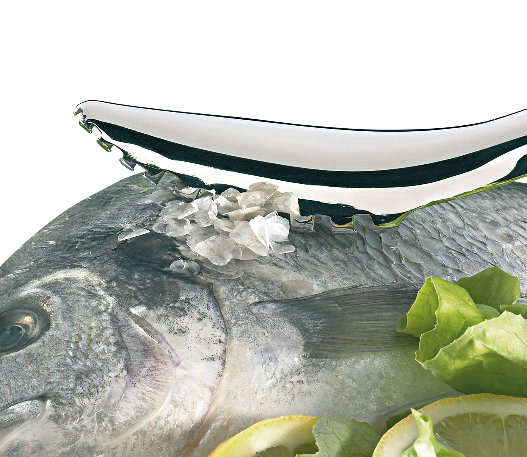 Ein im Ganzen zubereiteter Lachs ist eine feine Mahlzeit. Oder soll es lieber eine geschmorte Dorade mit Chili-Tomatensauce sein? In jedem Fall müssen die Schuppen herunter. Das funktioniert am besten vor dem Ausnehmen des Fisches. Und mit dem Fischentschupper von KÜCHENPROFI. Der Schaber entfernt Fischschuppen jeder Größe – rasch und gründlich. Das Abziehen der Haut können Sie sich sparen. Der Küchenhelfer liegt gut in der Hand und ist so geformt, dass Sie auch schwer zugängliche Stellen erreichen, ohne die Fischhaut zu verletzen. Übrigens: In vielen slawischen Ländern werden die getrockneten, silbrig glänzenden Schuppen des Silvesterkarpfens ins Portemonnaie gesteckt – damit dort im neuen Jahr keine Ebbe herrscht.