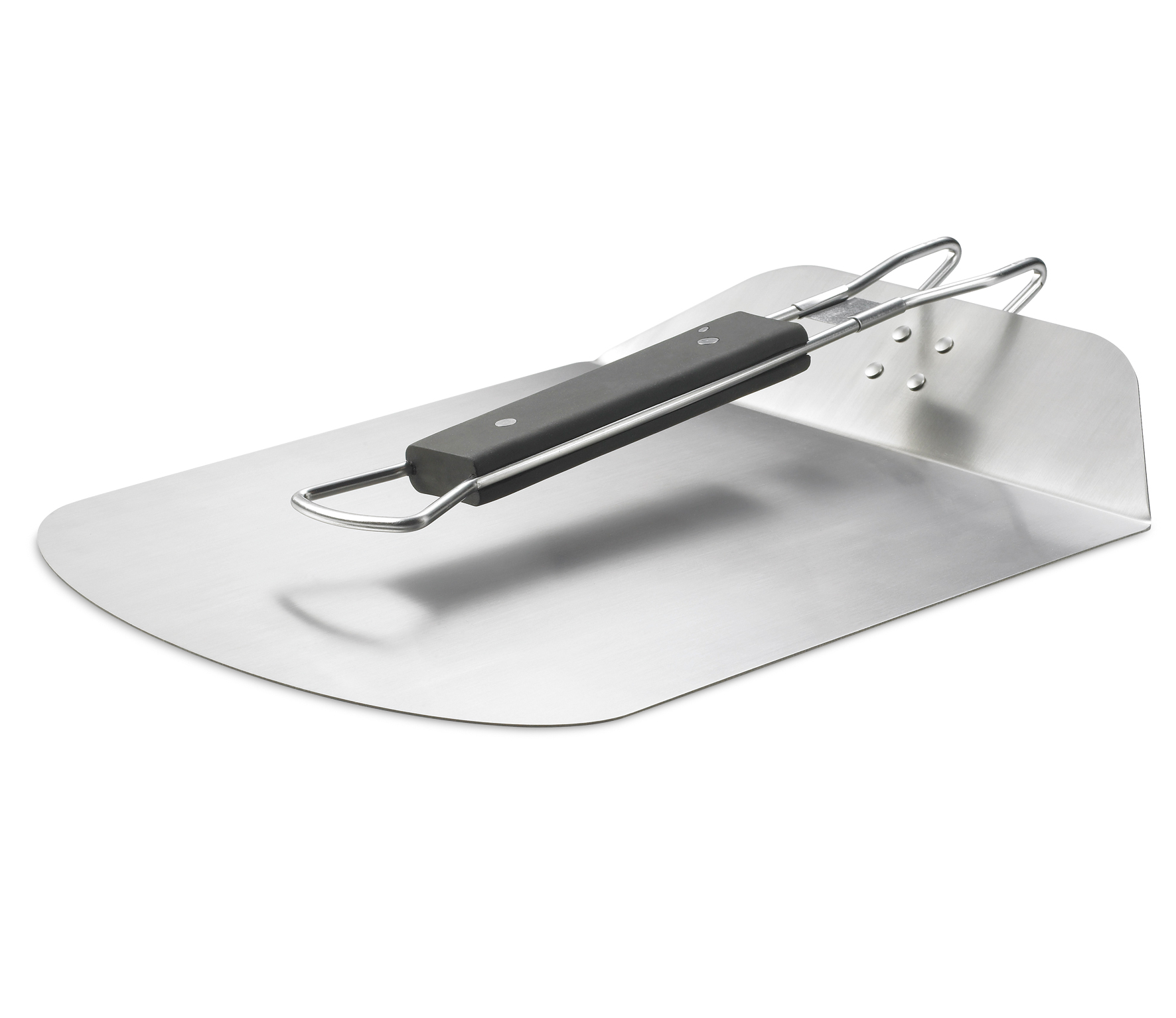 Heiße Ware ist sein Geschäft. ALFREDO, so heißt die Pizzaschaufel von KÜCHENPROFI, holt für Sie Pizza, Flammkuchen oder Brot aus dem Ofen. Auch knuspriges Kleingebäck ist ganz nach seinem Geschmack. Die Schaufel aus stabilem Edelstahl hat einen hitzeisolierenden Kunststoffgriff. Sie liegt gut in der Hand und ist sorgfältig verarbeitet. Dank der abgeschrägten Kante nehmen Sie die ofenfrischen Köstlichkeiten leicht auf und lassen sie ganz geschmeidig auf den Teller gleiten. Nach der gelungenen Übergabe zieht sich ALFREDO dezent zurück und wartet platzsparend zusammengeklappt auf seinen nächsten Einsatz.