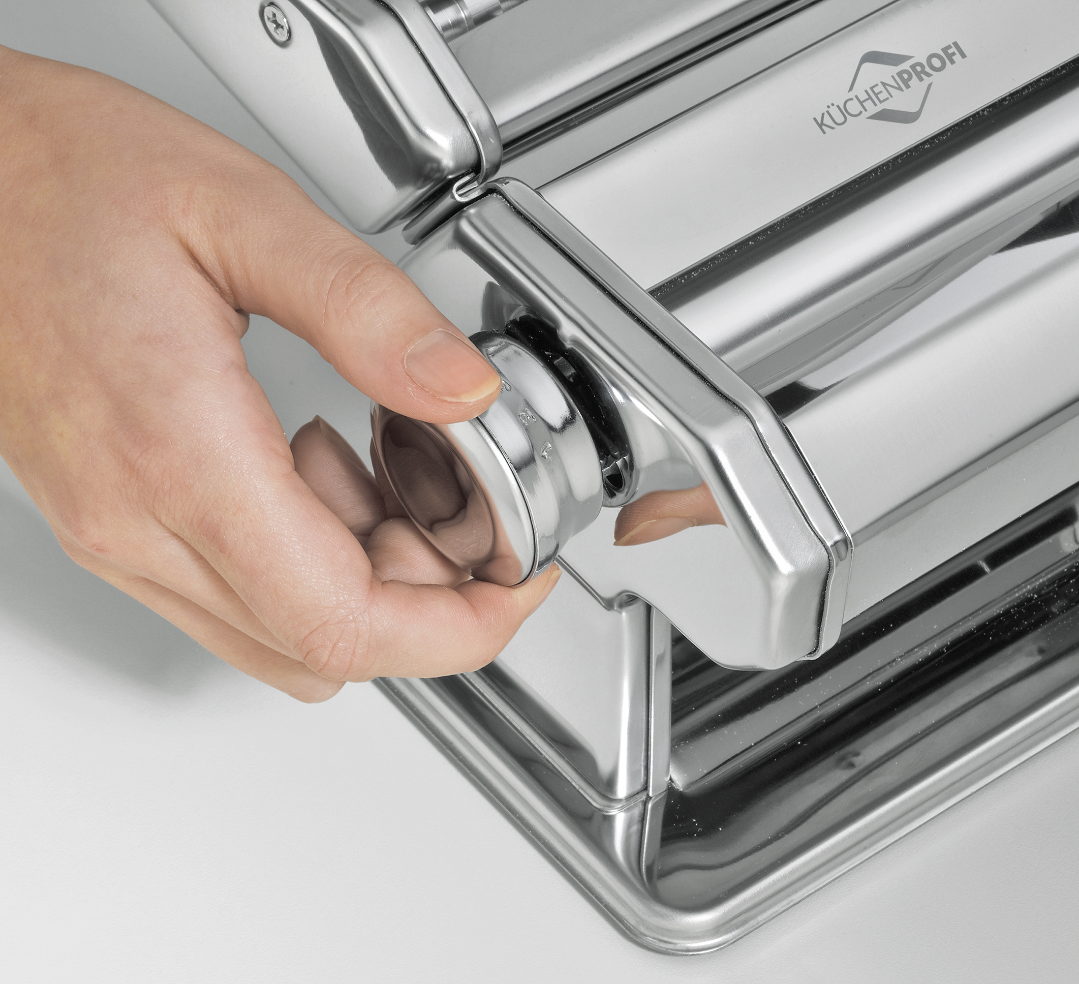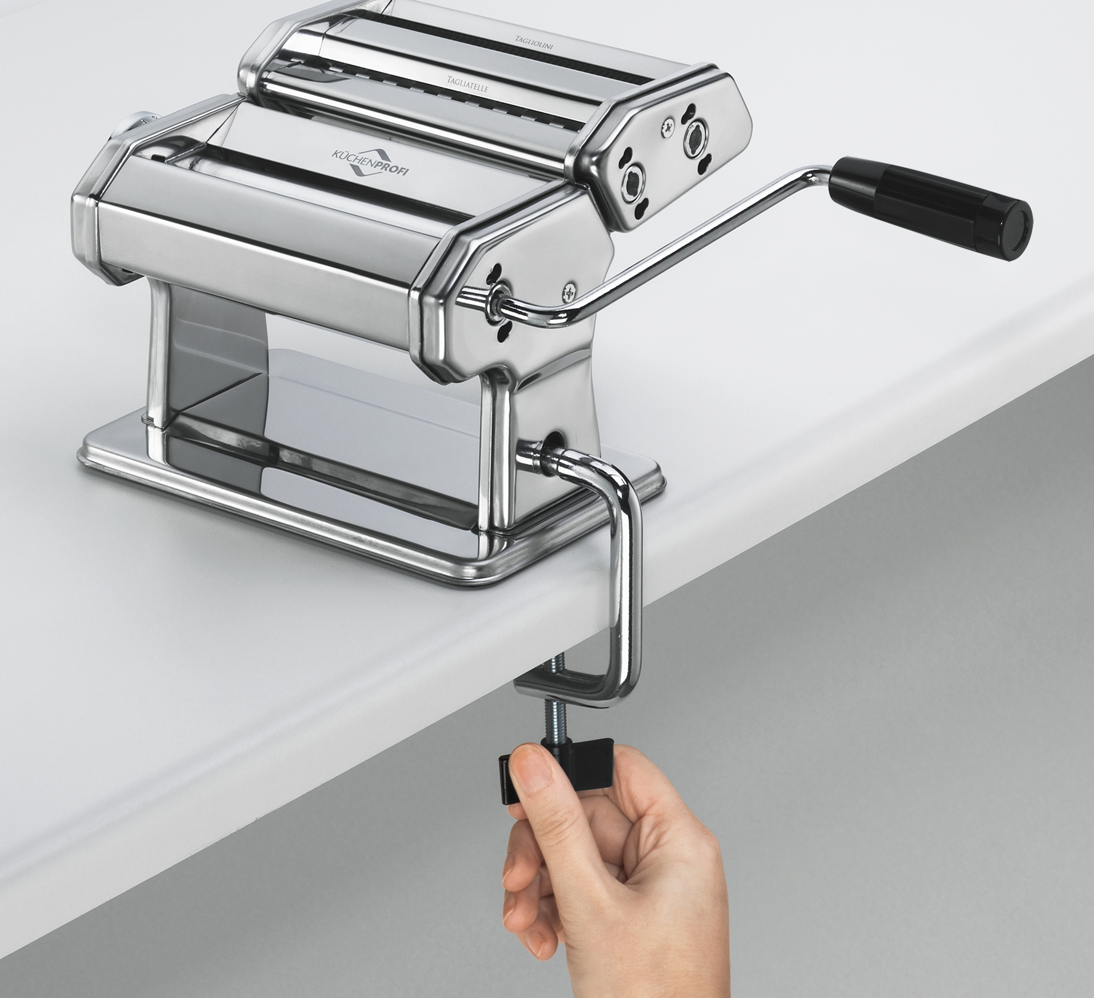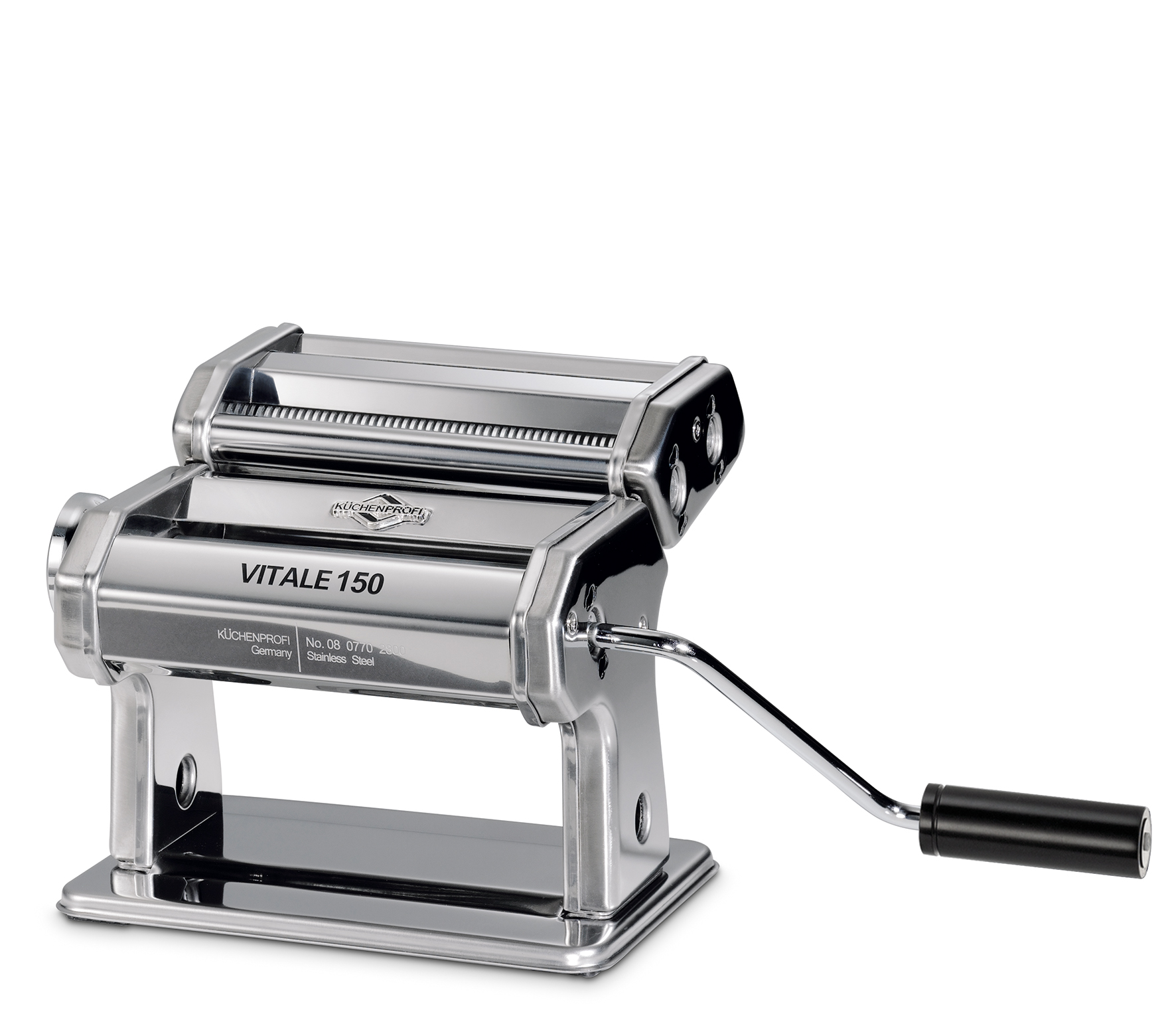 Sie könnte auch in Ihrer Lieblingstrattoria stehen. Die Nudelmaschine VITALE 150 von KÜCHENPROFI erfüllt die hohen Ansprüche von Gastronomen und ambitionierten Hobbyköchen Die Walzen aus eloxiertem Aluminium, mit denen Sie Nudelplatten wie Lasagne herstellen können, sind besonders korrosionsbeständig und langlebig. Dank des Reglers für sieben Teigstärken können Sie nach Lust und Laune variieren. Mit dem abnehmbaren Aufsatz gelingen Tagliolini und Tagliatelle mühelos. Die extragroße Tischklemme für Arbeitsflächen bis zu 6,5 cm Dicke garantiert eine sichere Handhabung. Ein Motor und Aufsätze für verschiedene Nudelsorten sind separat erhältlich. Wann steigt die Pasta-Party?