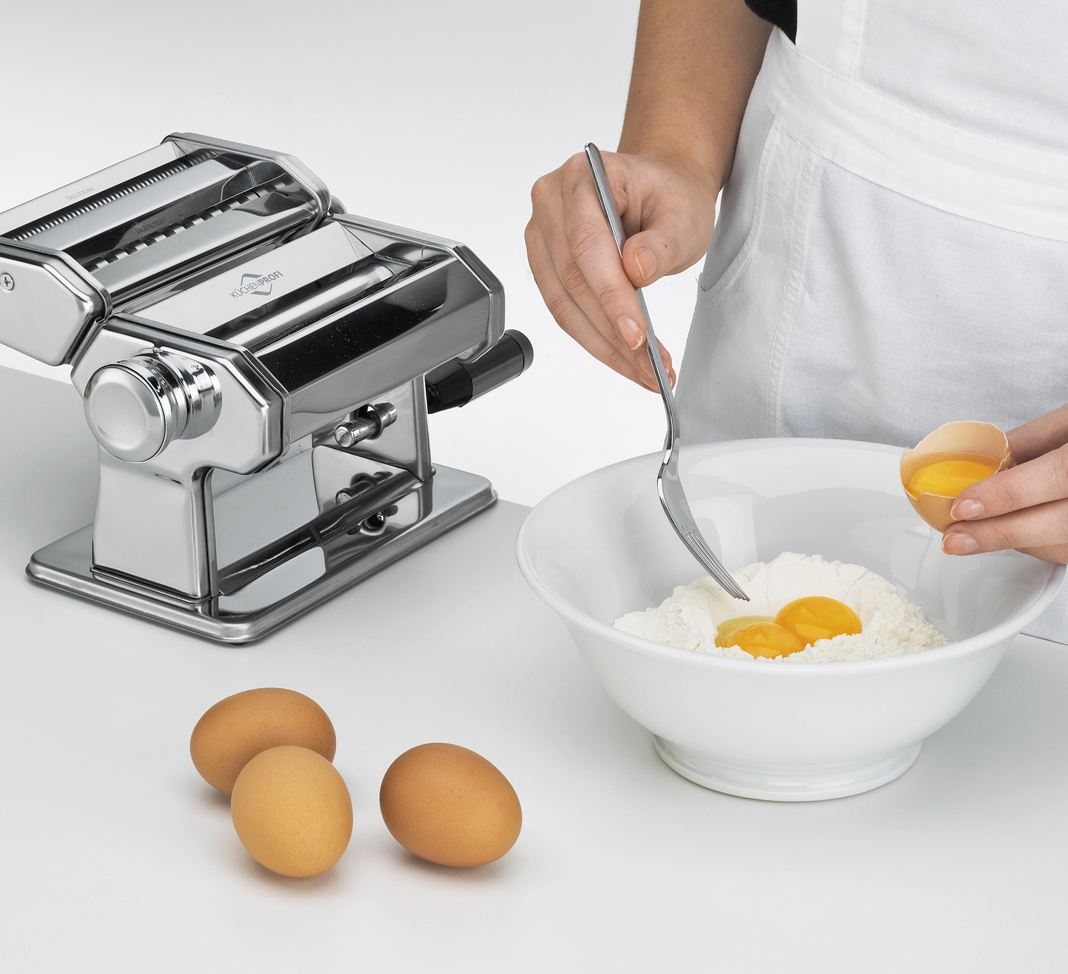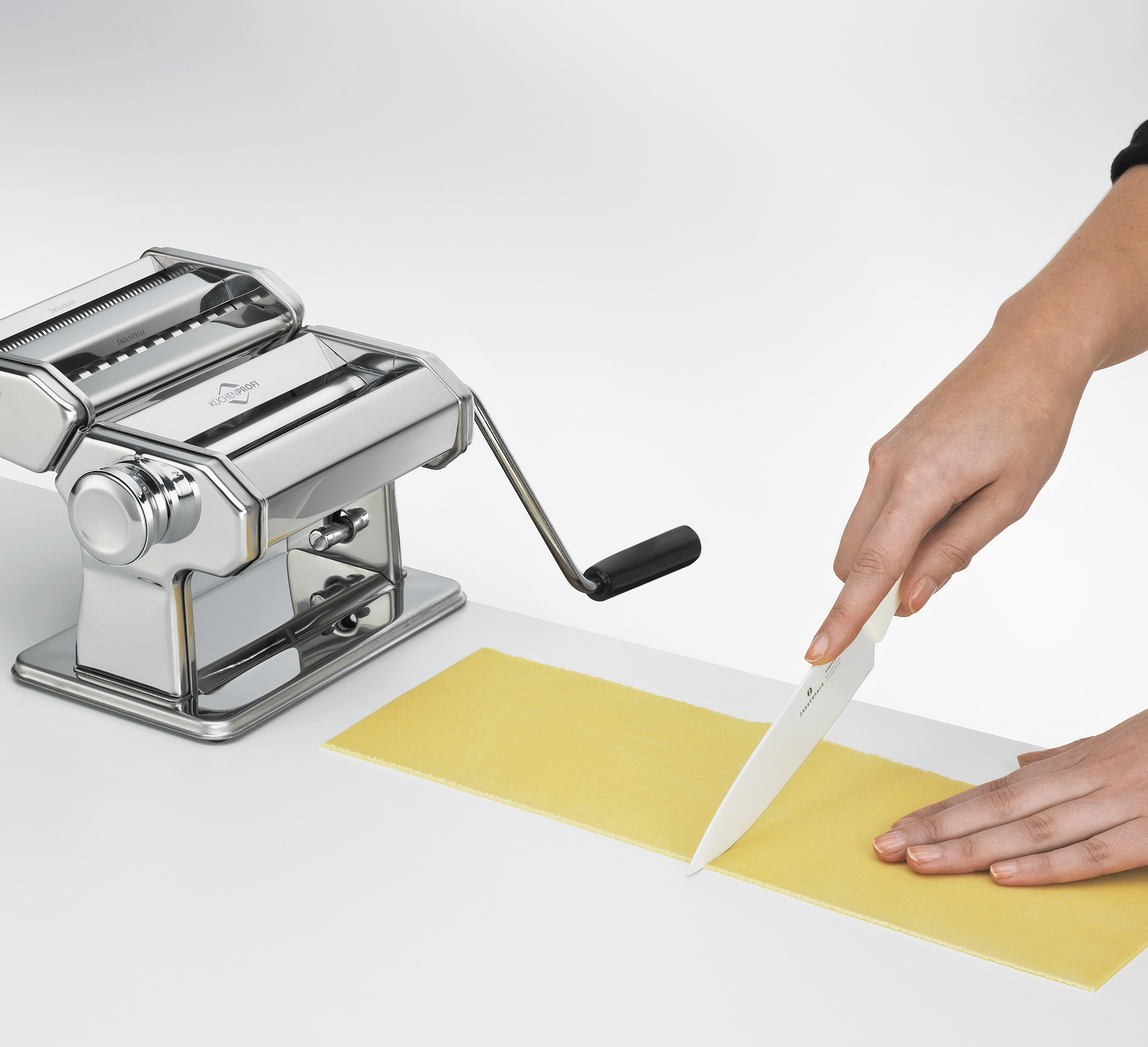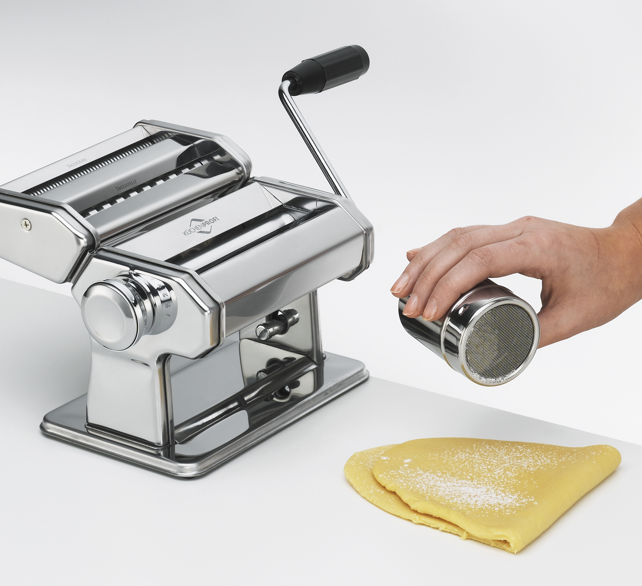 Sie könnte auch in Ihrer Lieblingstrattoria stehen. Die Nudelmaschine VITALE 150 von KÜCHENPROFI erfüllt die hohen Ansprüche von Gastronomen und ambitionierten Hobbyköchen Die Walzen aus eloxiertem Aluminium, mit denen Sie Nudelplatten wie Lasagne herstellen können, sind besonders korrosionsbeständig und langlebig. Dank des Reglers für sieben Teigstärken können Sie nach Lust und Laune variieren. Mit dem abnehmbaren Aufsatz gelingen Tagliolini und Tagliatelle mühelos. Die extragroße Tischklemme für Arbeitsflächen bis zu 6,5 cm Dicke garantiert eine sichere Handhabung. Ein Motor und Aufsätze für verschiedene Nudelsorten sind separat erhältlich. Wann steigt die Pasta-Party?