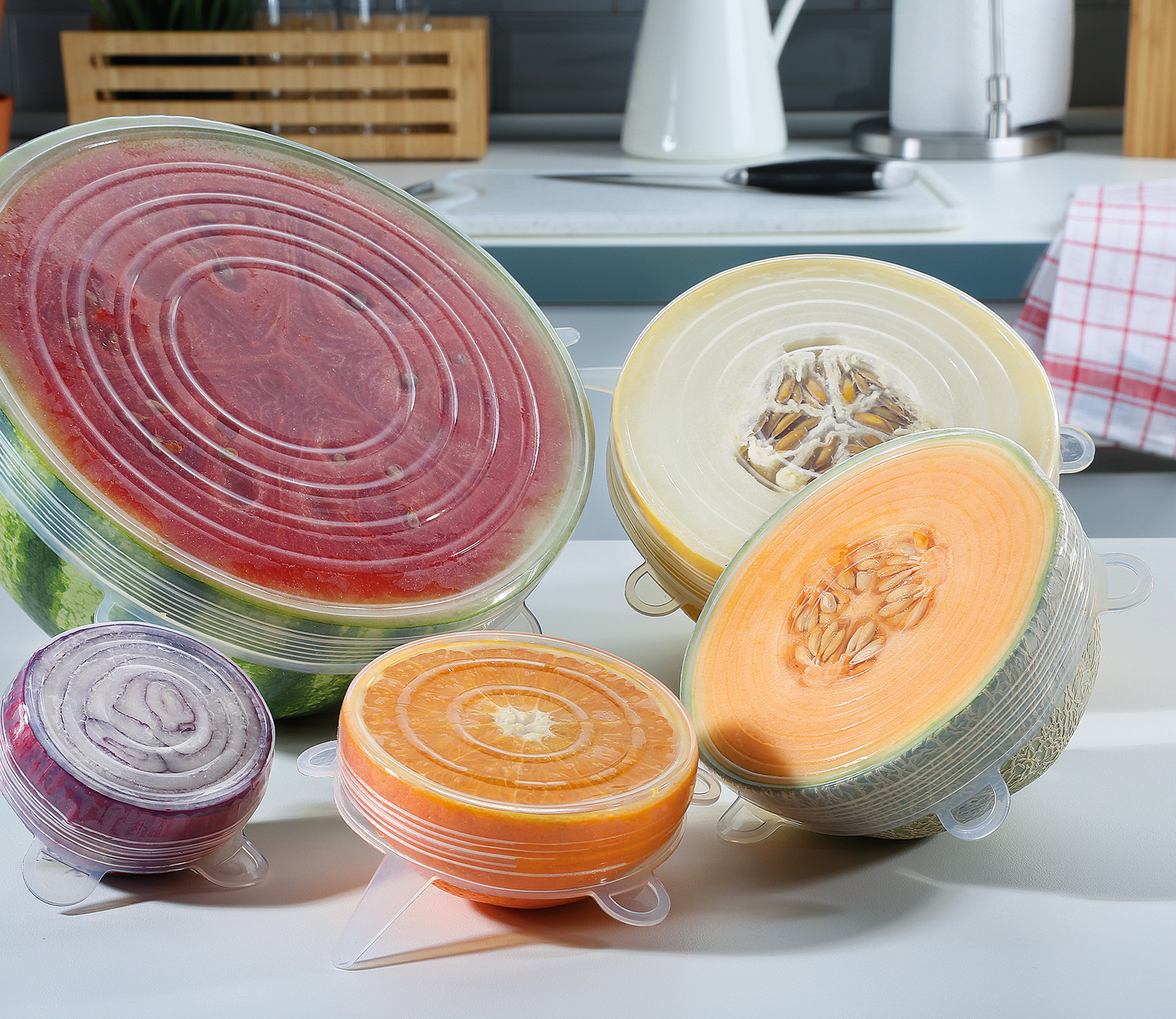 Beim Abendessen ist wieder etwas übriggeblieben, von der Dose Mais wurde nur die Hälfte gebraucht und die halbe Honigmelone soll erst am nächsten Tag in den Obstsalat. Frischhaltefolie ist keine Option – viel besser sind die wiederverwendbaren Frischhaltedeckel von KÜCHENPROFI. Die transparenten und dehnbaren Deckel in verschiedenen Größen passen sich vielen Behältergrößen und -formen an, decken angeschnittenes Obst und Gemüse zuverlässig ab und schließen dabei dicht. Sie sind temperaturbeständig von - 40 °C bis + 230 °C und damit auch im Kühlschrank, Mikrowellenherd, Backofen sowie im Gefrierfach verwendbar.